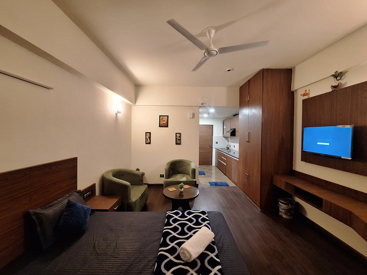 Akár a partnereddel, a családoddal vagy a barátaiddal utazol, ez a bájos 1BHK a kényelemről és a kapcsolatokról szól. Főzzetek együtt a teljesen felszerelt konyhában, szórakozzatok a játékokkal, vagy egyszerűen pihenjetek az erkélyen, ahonnan gyönyörű kilátás nyílik. A hely minden szeglete úgy van kialakítva, hogy otthon érezd magad. Nyugodt, meghitt és boldog.