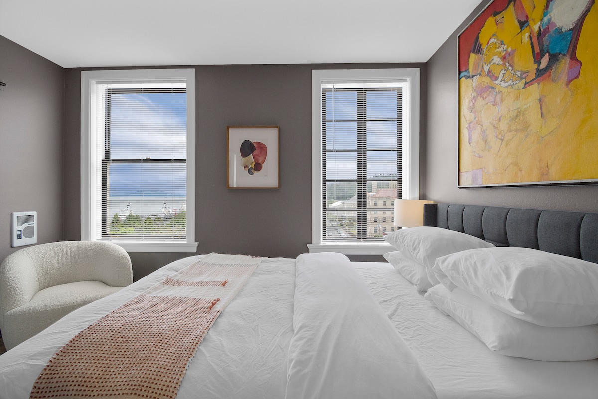 A modernitást szem előtt tartva tervezett luxuslakás az Astor Building legfelső szintjén található az Astor Building, amely az Astoria belvárosának szívében található. Pihenj a nappaliban puha bútorokkal és egy kétszemélyes asztallal, miközben gyönyörködsz a városra és a Columbia folyóra nyíló kilátásban az ablakok nagy partján keresztül.