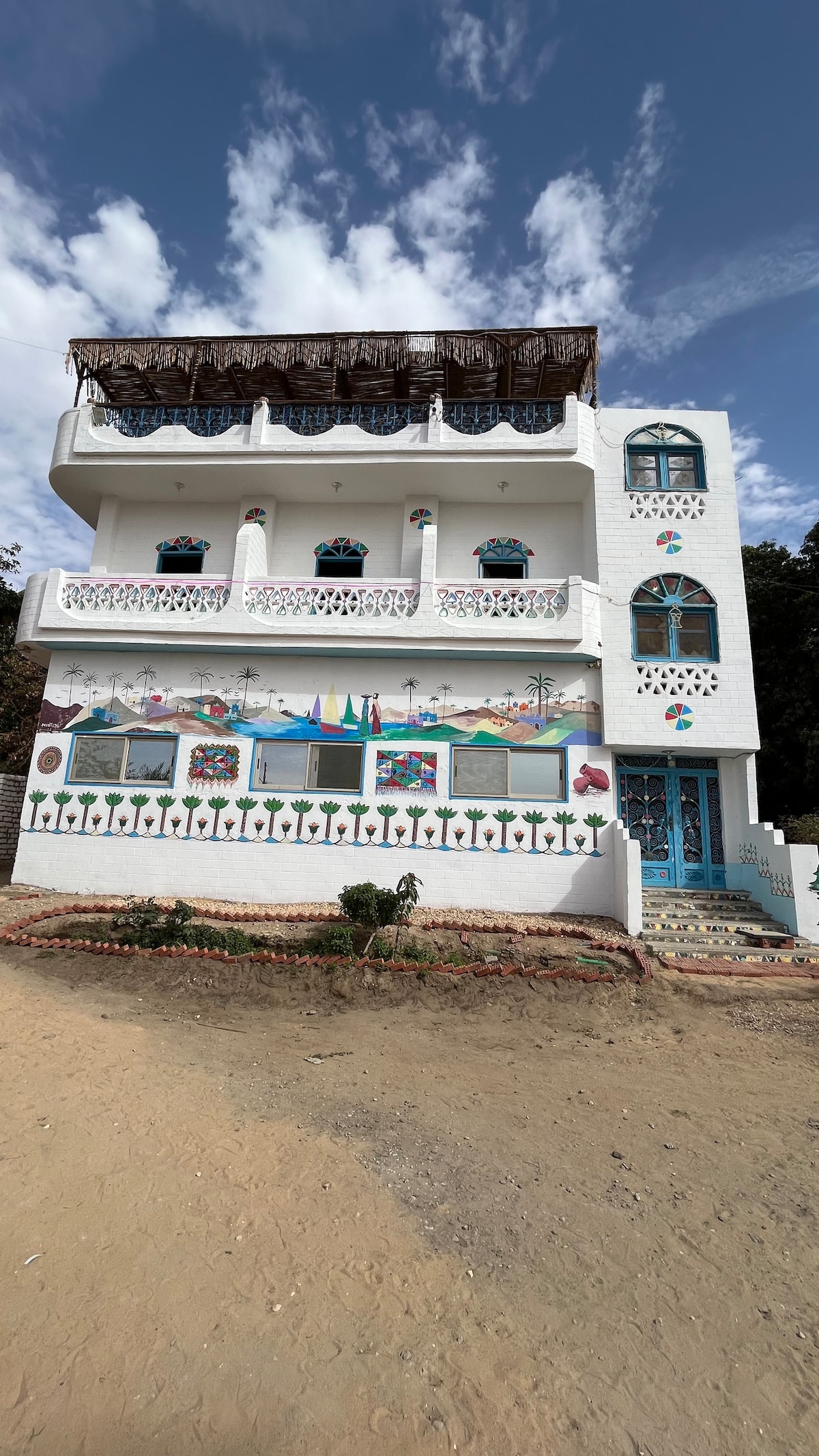 Five beautifully designed, separate Nubian guest houses await you in one of the last traditional villages along the Nile. Each cabin offers privacy and the distinctive charm of Nubian architecture: Colorful wall paintings, domed ceilings, and natural cooling. My family has been living on Sehel-Island (close to the city center) for many centuries and I offer a traditional nubian-egyptian experience including breakfast and dinner freshly prepared by my wive Hinda.