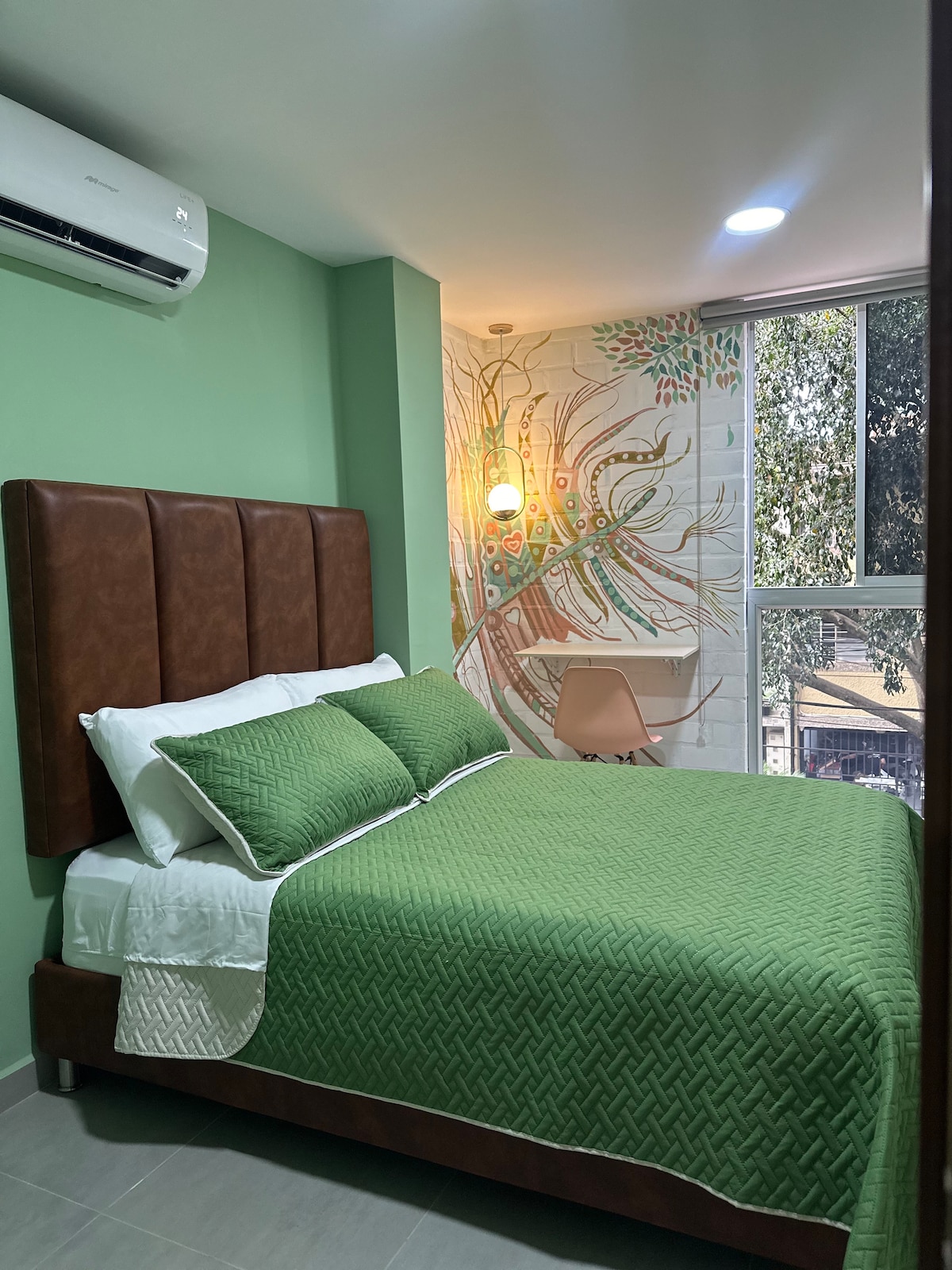 Kényelmes kis szoba saját fürdőszobával. Minden kényelmi szolgáltatás, amire szükséged lehet, biztosítva van. Nagyszerű elhelyezkedés Laureles, Medellín egyik legszebb szomszédságában. Junior szoba kétszemélyes ágy (1,20m) SmartTV 32" Minibár hűtőszekrény 50L Szekrény mosdó és kamra Privát fürdőszoba ÚJ: Tartalmazza a reggelit!