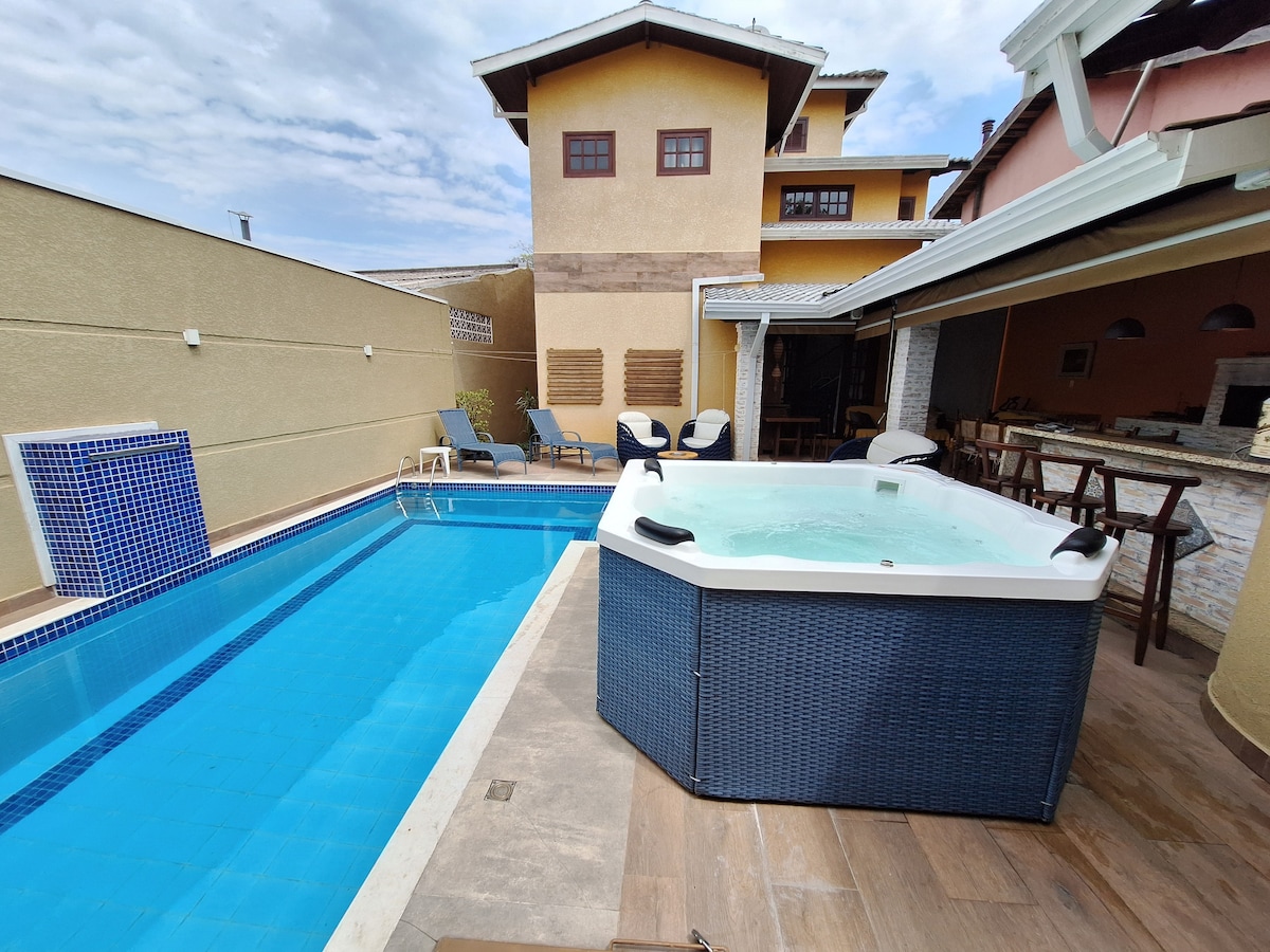 Casa pé na Agua Igarata Pier és fűtött medence