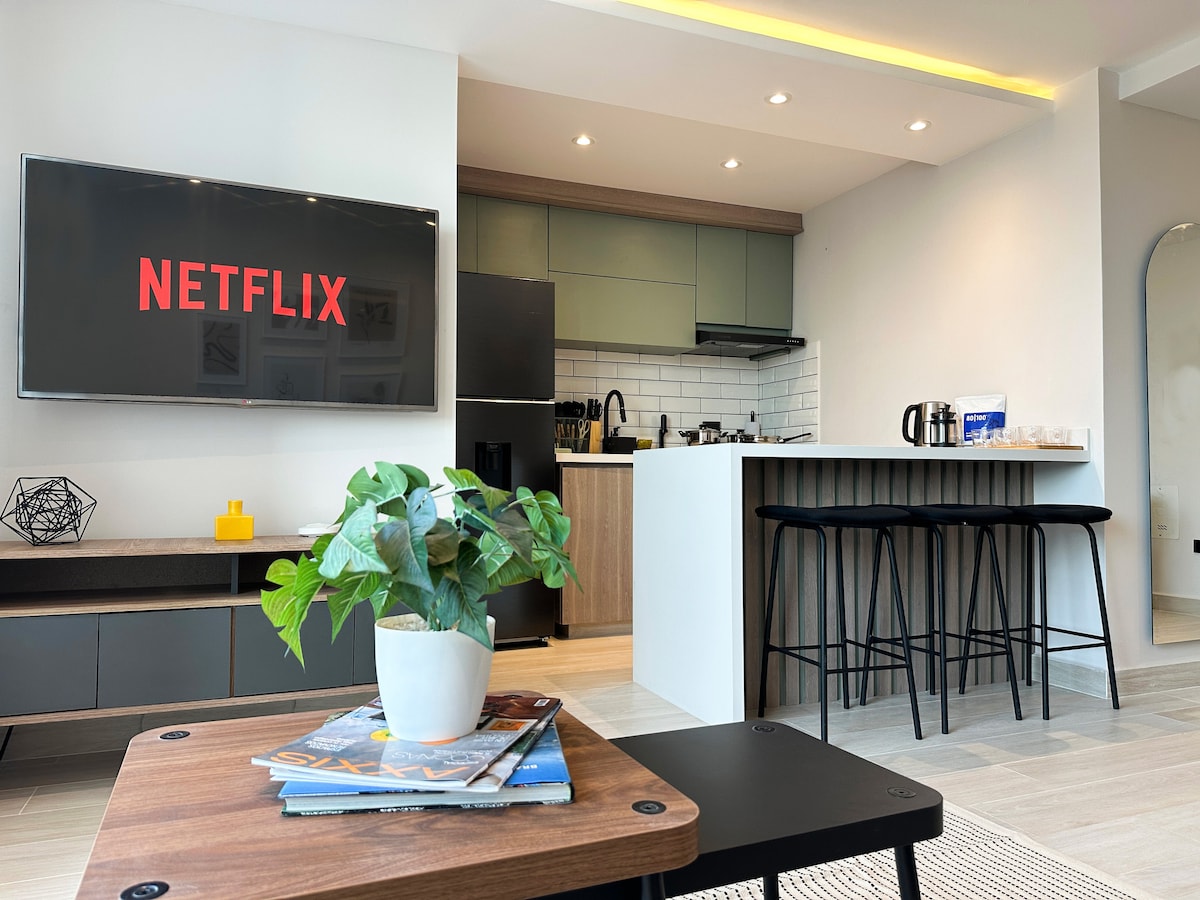 Üdvözlünk a MOZAIK ESSENCE-BEN, egy teljesen berendezett, modern, loft stílusú lakásban, amely Barranquilla egyik legexkluzívabb környékén található. Élvezd a kiváltságos helyet, amely csak pár lépésre van a Buenavista és a Viva bevásárlóközpontoktól, amelyeket a legjobb éttermek, klinikák, szupermarketek és üzleti negyedek vesznek körül.