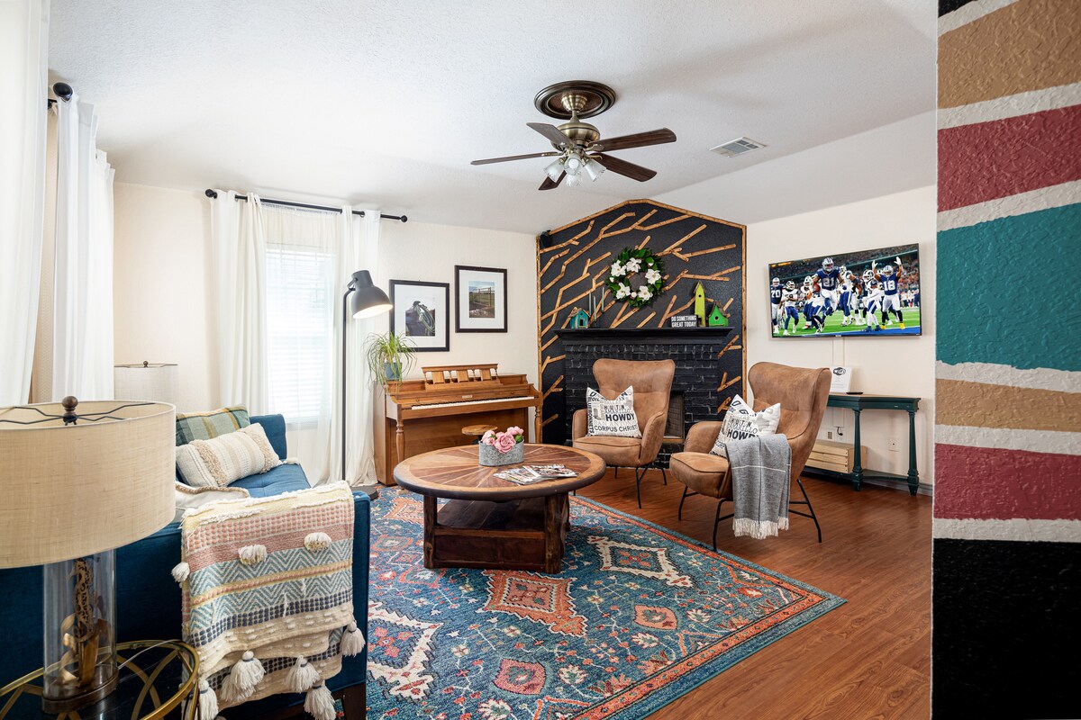 Mit fogsz tenni a szálláshelyen eltöltött időddel ❤️ kapcsolatban: - Központi elhelyezkedés Arlington szívében - Perceken belül az AT&T Stadiontól, Texas LIVE, Globe Life Field, Six Flags, Hurricane Harbor, University of Texas at Arlington, Billy Bob 's of TX, Famous Stockyards of Fort Worth és DFW Airport - 19 perc sétára az AT&T stadiontól - Sétatávolság üzletektől, éttermektől és bároktól - Tűzrakóhely/grill/kültéri étkezés - Teljesen felszerelt konyha (kávékapszulák/kávé mellékelve) - Nagysebességű internet - (3) intelligens tévék - Teljes méretű mosógép és szárítógép