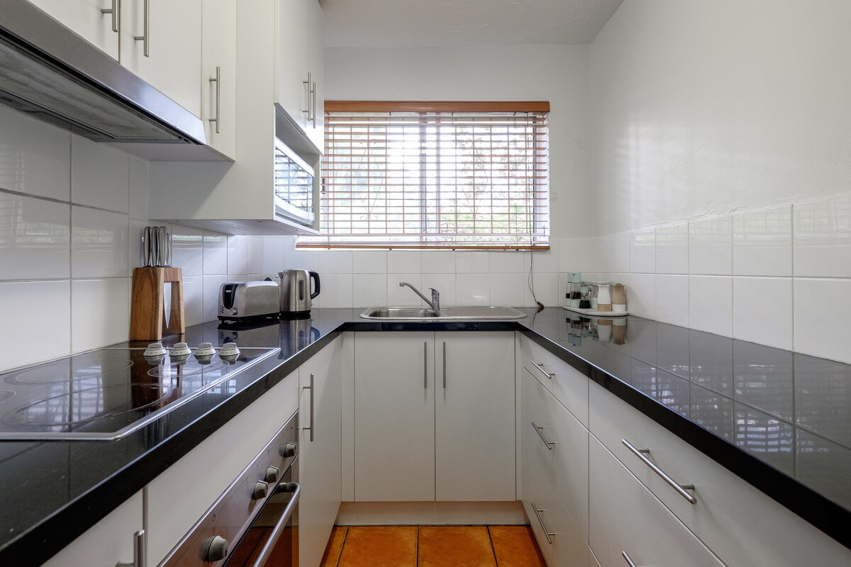 A stylish contemporary apartment with kitchen, ensuite and floor to ceiling bi-fold glass doors opening onto a private patio with Bar-B-Que. The pool pavilion is set against the backdrop of a lush tropical garden. The swimming pool is heated seasonally (A surcharge will apply if pool is requested during winter.)