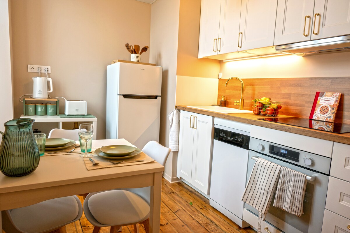 Élvezd az elegáns, 70m2-es, teljesen felújított és ideális elhelyezkedésű szálláshelyet, amely 50 méterre található a tértől. Ebben a világos lakásban két erkély található, egy tágas és kényelmes nappali tölgyfa keményfa padlóval. Csatlakoztatott, oled TV Netflix-fiókkal. A konyha teljesen felszerelt (sütő, mikrohullámú sütő, kávéfőző) A fürdőszoba vízsugaras fürdőkáddal van felszerelve, amely ideális a pihenéshez. A lakás alatt biztonságos garázs is lesz.