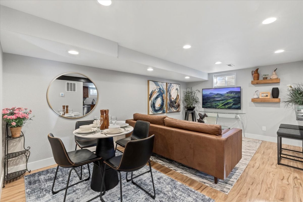 • Nagy, PRIVÁT alsó szintű lakás duplex házban – ideális családoknak, pároknak és baráti társaságoknak • Két márványcsempés fürdőszoba dupla mosdóval, fürdőkággyal és két zuhanyzóval • 10-15 percre a belvárostól! Közel a fő autópályához (I-25) • Felszerelt teakonyha • 2 nagy TV ingyenes hozzáféréssel a Netflixhez, HBO-hoz, Huluhoz, Apple TV+-hoz stb. • Saját bejárat kulcs nélküli belépéssel • Nagy hátsó udvar és terasz gáztűzhellyel és grillel. • A dohányzás megengedett a szabadban / 420-barát • A tulajdonosok az emeleten laknak egy külön lakásban