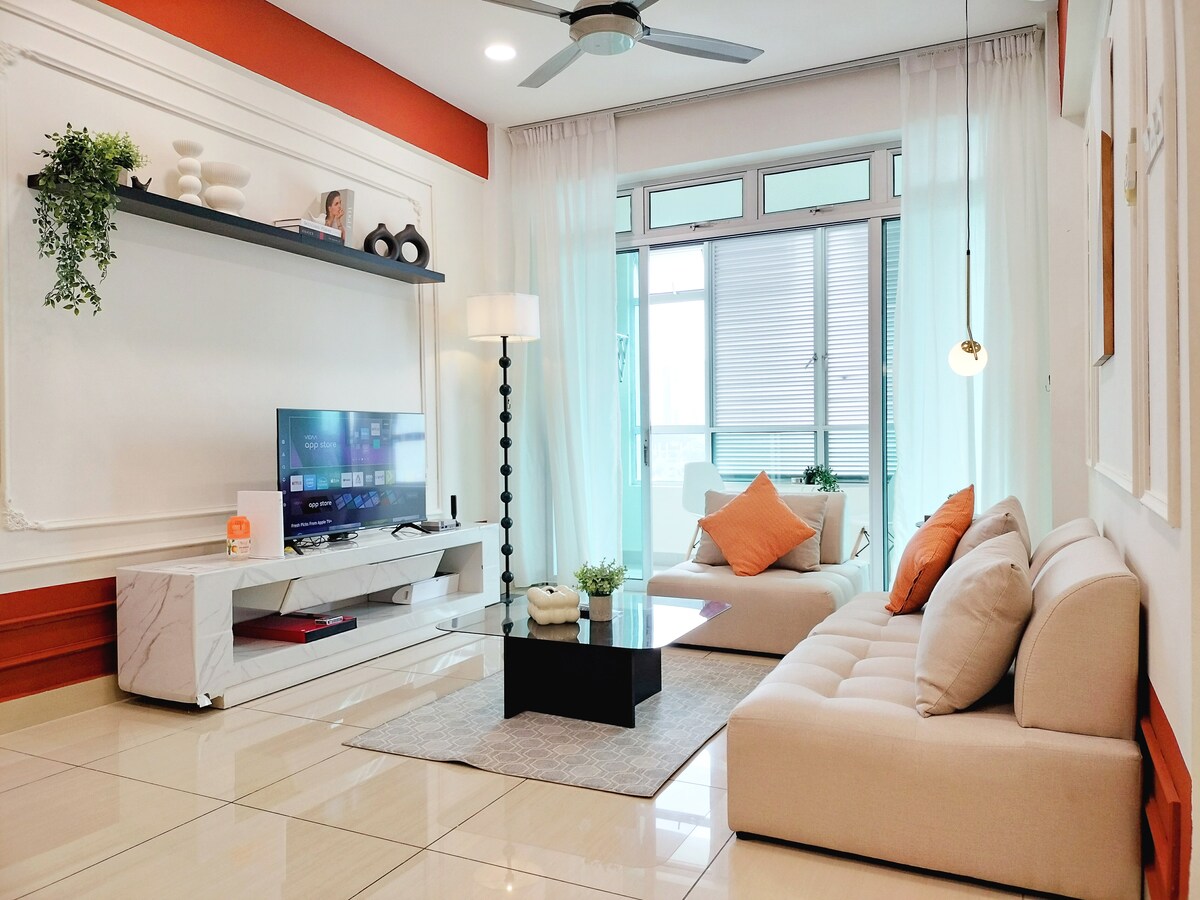 🌟 Welcome to our 3-room Airbnb in Mount Austin, Johor Bahru! ❤️ A short walk to Mount Austin, one of the most happening area in Johor Bahru that offers endless of entertainment and food! 🥙 Enjoy picturesque views, a cozy living room, dining area, well-equipped kitchen, comfortable bedrooms, and a balcony with stunning Mount Austin views. ⛳️ Building amenities include a pool, gym, and playground. Nearby attractions and dining options. 🏊♀️