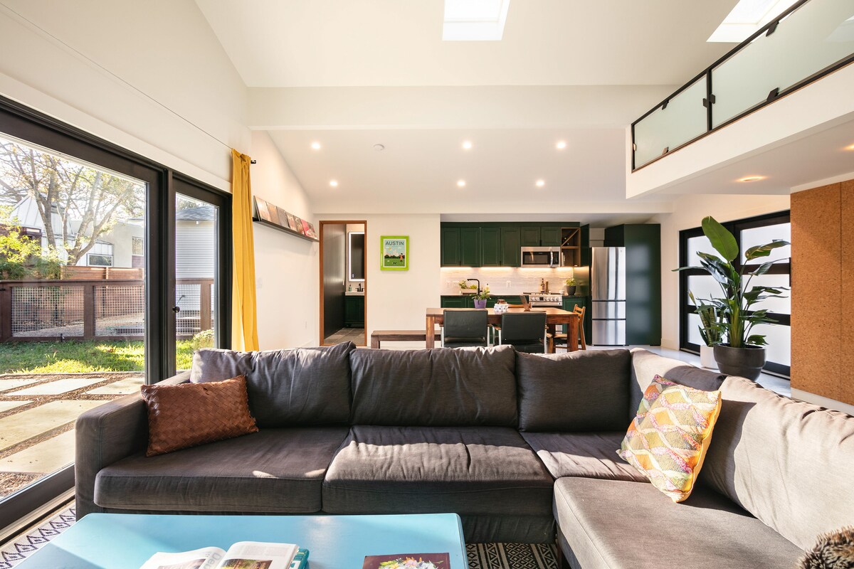 Saját modern oázisod egy igazi austini környéken, sétatávolságra bároktól, kávézóktól, hajómedencétől, kiváló éttermektől, történelmi nevezetességektől, élelmiszerboltoktól és számos vintage üzlettől. A Fiber Wifi gyors, a memóriahabos matrac kényelmes, a privát hátsó udvar és az esőzuhany fényűző. Kulcs nélküli bejárat, mosógép és szárítógép, teljes konyha mosogatógéppel, 65hüvelykes LCD TV Rokuval. 5 percre a Texasi Egyetemtől 10 percre a belvárostól 2 háztömbnyire a busztól a belvárosig