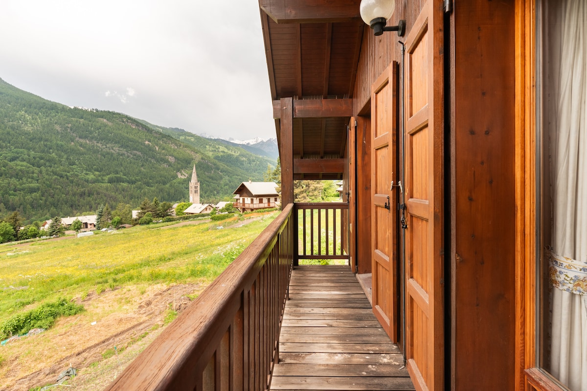 Independent chalet with wood fireplace, surrounded by private garden, free private garage + 2 other free parking places. South facing with fields in front, fantastic view of the mountains from sunrise to sunset, 300 days of sunshine a year Easy access to ski slopes, surrounded by mountains for hikes; start directly from the front door! Ideal for a family or friends for relaxing summers or winter sports Certification: Meublé de Tourisme 3 étoiles 16/10/2025 Pôle Classement Meublés Briançon