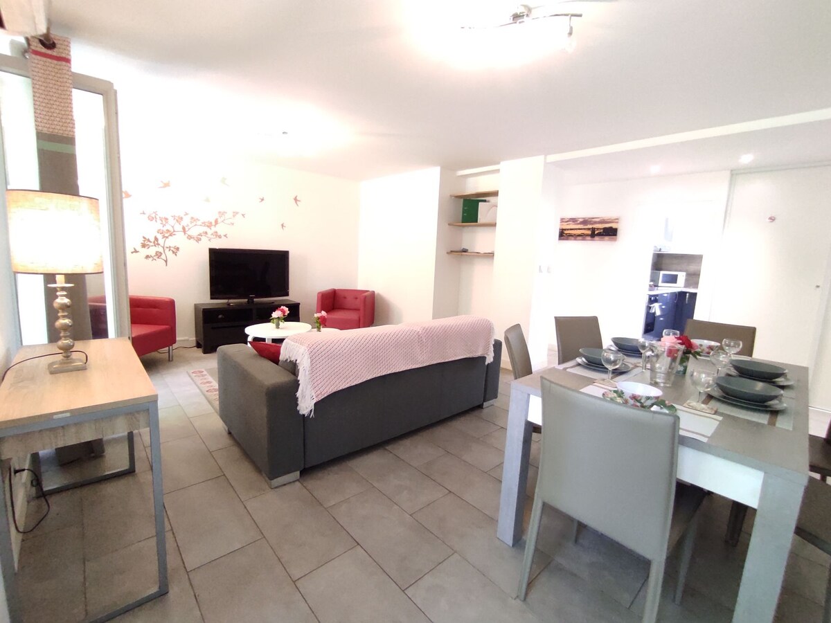 Az Agenben való tartózkodásodhoz ezt a kényelmes lakást kínáljuk tiszta és nyugtató dekorációval... Értékelni fogod a gyönyörű szolgáltatásait: franciaágy és csúcsminőségű ágynemű, valamint egy kanapéágy, amely további ágyneműt, teljesen felszerelt konyhát, TV-t, Wi-Fi-t és ingyenes parkolást kínál a rezidencia előtt. A részben fedett teraszhoz való közvetlen hozzáférés lehetővé teszi a pihentető pillanatok meghosszabbítását a szabadban.