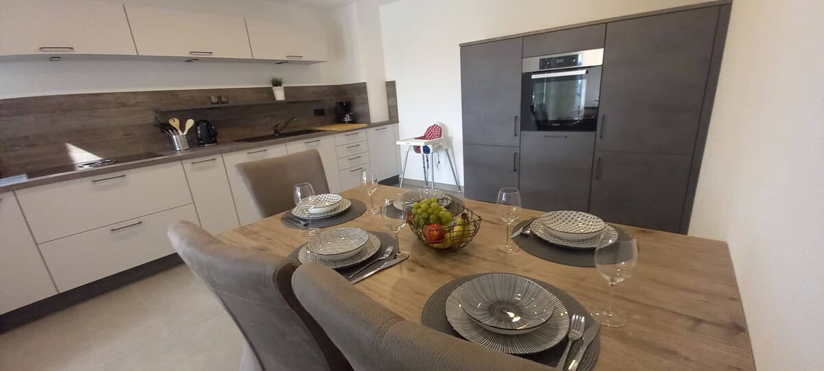 Willkommen in unserer im Mai 2023 neu renovierten Ferienwohnung. Auf großzügigen 90 m² finden bis zu 8 Personen Platz. Die Wohnung bietet eine komplett ausgestattete Küche, ein gemütliches Wohnzimmer mit Smart-TV, Radio und WLAN. Es gibt drei Schlafzimmer: ein Etagenbett, Einzelbett mit Ausziehbett, ein Doppelbett und zwei Einzelbetten. Das Bad verfügt über Dusche, WC und Waschmaschine. Die Terrasse ist mit Grill und Sitzgruppe ausgestattet. Ab März mit privatem Saunabereich Preis auf Anfrage.
