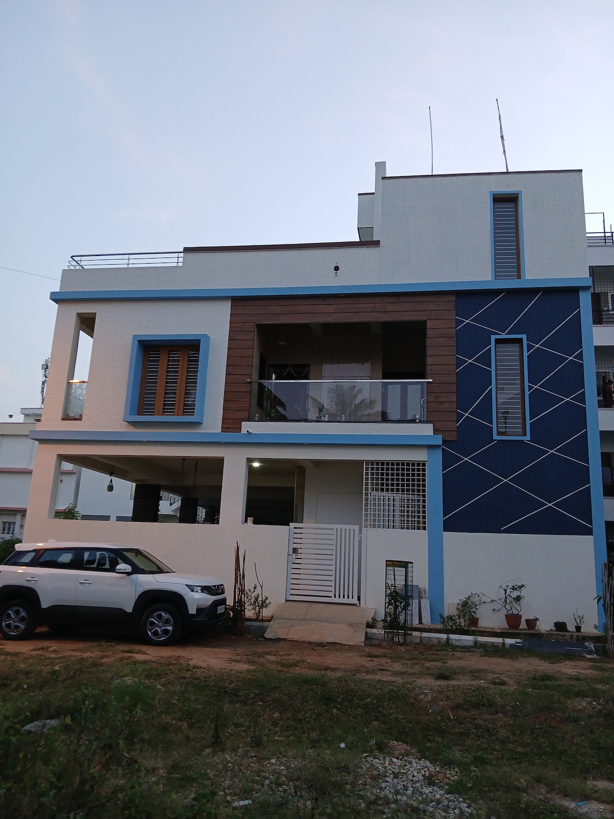 A több mint 1200 négyzetméteres tágas, nyugodt 2 BHK otthon a városi és a falusi élet között helyezkedik el - tökéletes a következő nyaraláshoz vagy egy csendes hétvégéhez. A következőkkel rendelkezik: - Ingyenes fedett parkoló autóknak, kerékpároknak – Bútorozott hálószobák - 1 csatlakoztatott, 2 közös, teljesen felszerelt fürdőszoba napenergiával, gejzírfűtéssel - Ingyenes mosógép - WFH-beállítás - Gyors Wi-Fi - Éjjel-nappali biztonsági mentés - Hatalmas fedett terasz hintával és lágy fénnyel - Buja zöld kert pázsittal, virágokkal és gyümölcsös növényekkel - Teljesen felszerelt konyha gázzal, elektromos tűzhellyel