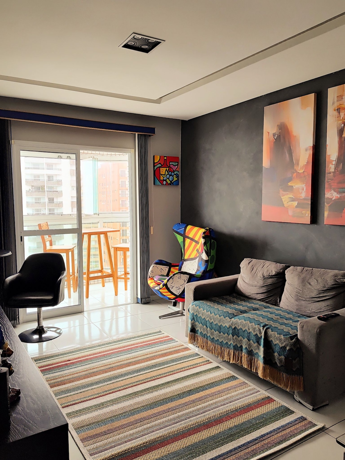 Gyönyörű apartman Praia Grande-ben, csodálatos kilátás az Aviação strandra. Elhelyezkedés: 2 perc sétára a homoktól, 4 percre a Boa Praça pékségtől, 5 percre az ibizai kioszktól. Gyönyörűen szellős lakás ventilátorral a nappaliban és a hálószobában. Szoba franciaággyal és kanapé franciaággyal King kanapé (3 méter) 1 WC Teljes konyha, serpenyők, edények, evőeszközök, csészék, Dolce Gusto elektromos kávéfőző, Airfryer, mikrohullámú sütő, elektromos kenyérpirító, TV (nyílt csatornák), Wi-Fi és elektronikus zár.
