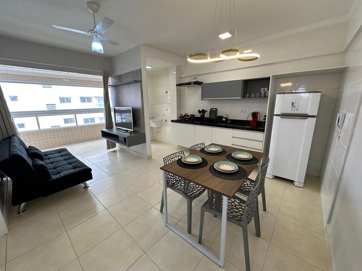 Localização privilegiada, há 250m da praia Aviação. Apartamento novo, limpo, e pensado com carinho para te receber! Além disso, todos os serviços essenciais e turísticos, como mercado, farmácias, bares, restaurantes, padarias, estão a um passo de distância. Será um prazer receber você e sua família! OFERECEMOS: SACADA COM CHURRASQUEIRA ELÉTRICA, 2 VAGAS NA GARAGEM, 2 ELEVADORES, 2 QUARTOS COM PROTEÇÃO DE TELA E VENTILADORES, LAVANDERIA , SALA DE ESTAR, COZINHA COMPLETA E 2 BANHEIROS (UM SUÍTE).