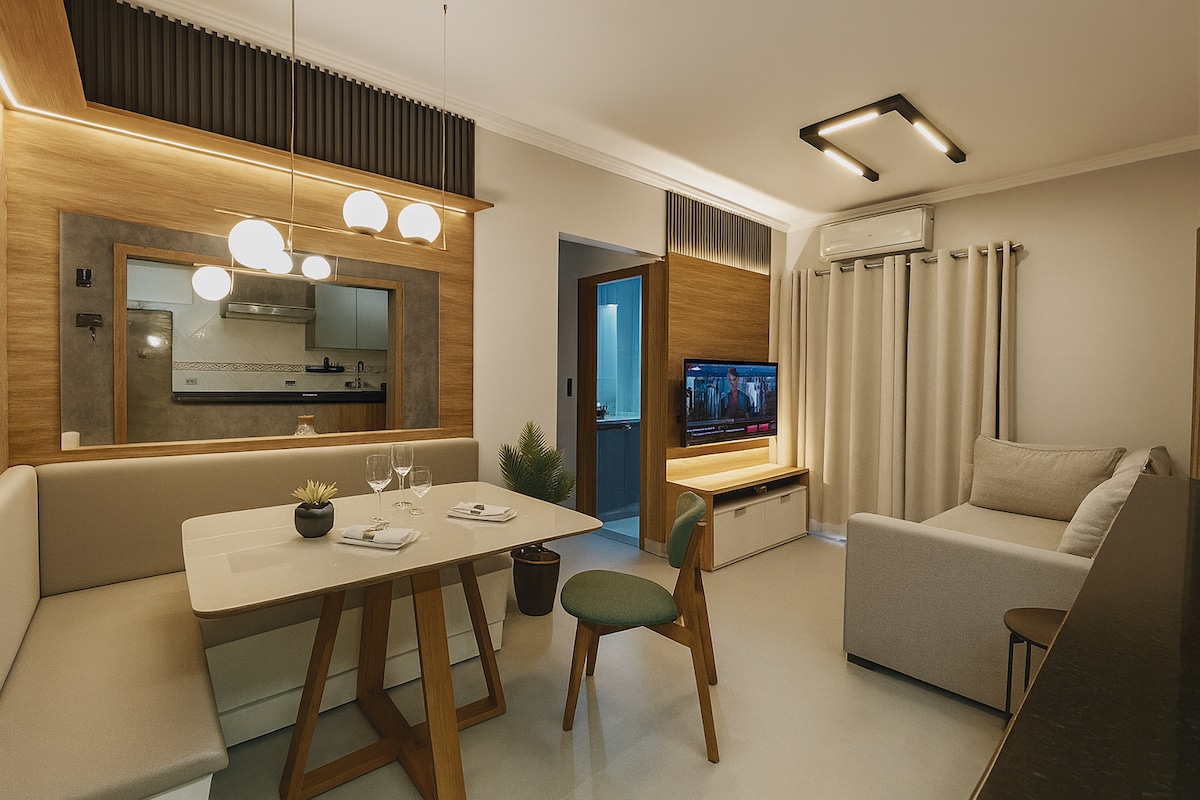 📍 Tegyél meg mindent sétával! * 50m do Carrefour, Extra, gyógyszertárak, vásárok és számos bár, étterem, McDonald's, Habib's és Av. Costa e Silva. 🌊 VISTA DESLUMBRANTE- Beira Mar - Guilhermina Beach! 🕗 Az érkezés és a távozás rugalmassága, zéró díj ellenében és a lehetőségeken belül. 🗝️ Önálló bejutás 📶 Wi-Fi Fibre - 400 Mega. 📺 SmartTv-50 Pol. 🍖 Grillezőkészlet. Erkélyüvegezés🪟 . 🛌 Ágynemű - 100% pamut