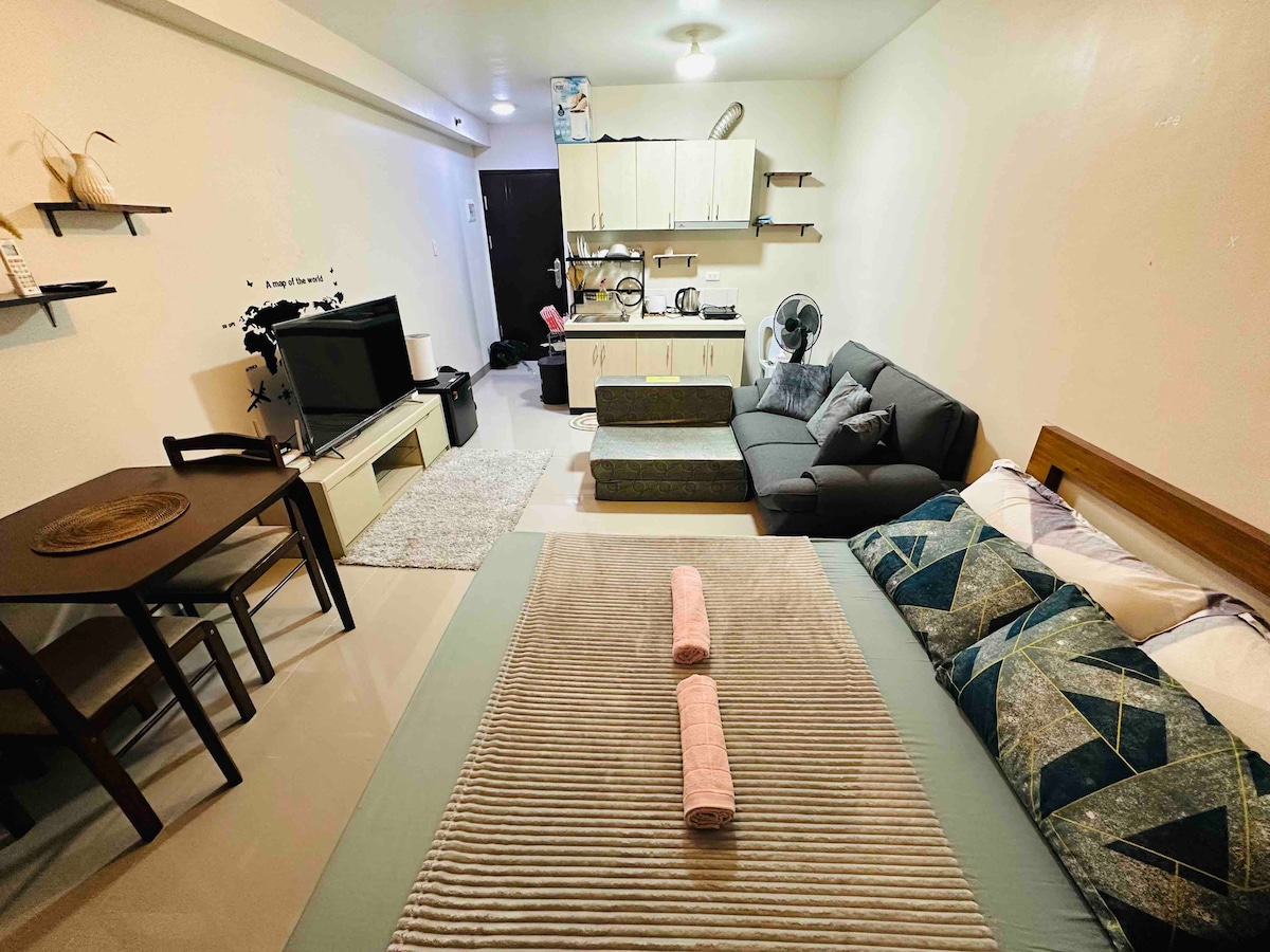 Welcome to our fully-furnished studio unit, thoughtfully designed to give you all the comforts of home. Located right at the heart of the city, our space offers a peaceful ambience and a relaxing view of both the city skyline and the lush gardens of IT Park. Whether you’re here for business or leisure, you’ll find everything you need for a comfortable stay. As your host, I’m always happy and ready to assist you to ensure your experience is smooth and enjoyable. Book your stay now!
