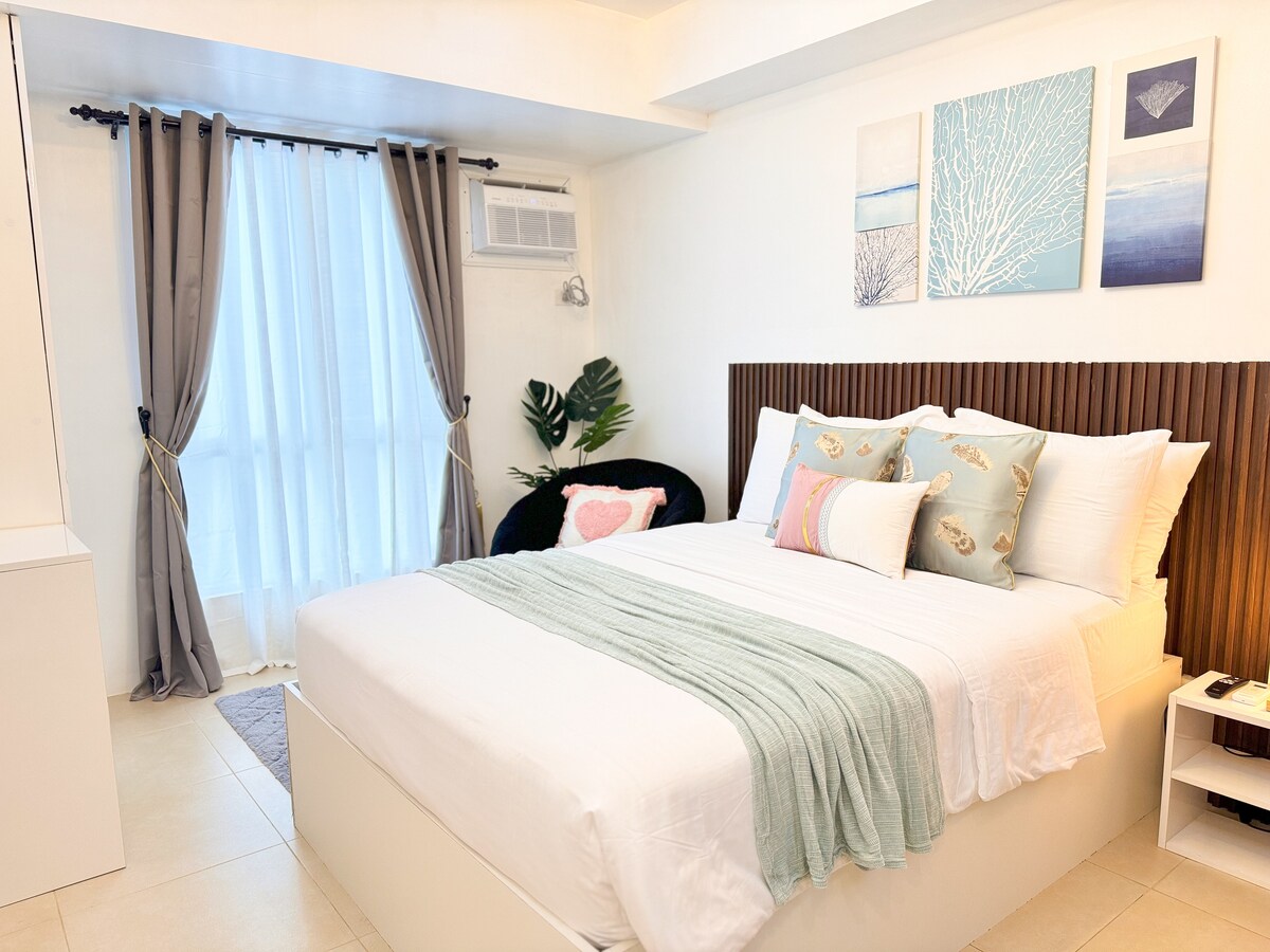 Üdvözlünk az otthonodban, távol az otthonodtól Cebu szívében! Ez a teljesen berendezett stúdió a Cebu IT Parkban található – Cebu legnépszerűbb városi és életmódos úti célja. Medencék, gyors internet/Wi-Fi és okostévé Netflix-szel. A lakás kényelmes ággyal, friss ágyneművel és törölközőkkel, valamint teljesen felszerelt konyhával és étkezővel rendelkezik. Imádni fogod a kényelmet is, hogy közel vagy a Sugbo Mercadóhoz, az Ayala Mallhoz, mosodákhoz, kisboltokhoz, ATM-ekhez, fizetős parkolókhoz és még sok máshoz.
