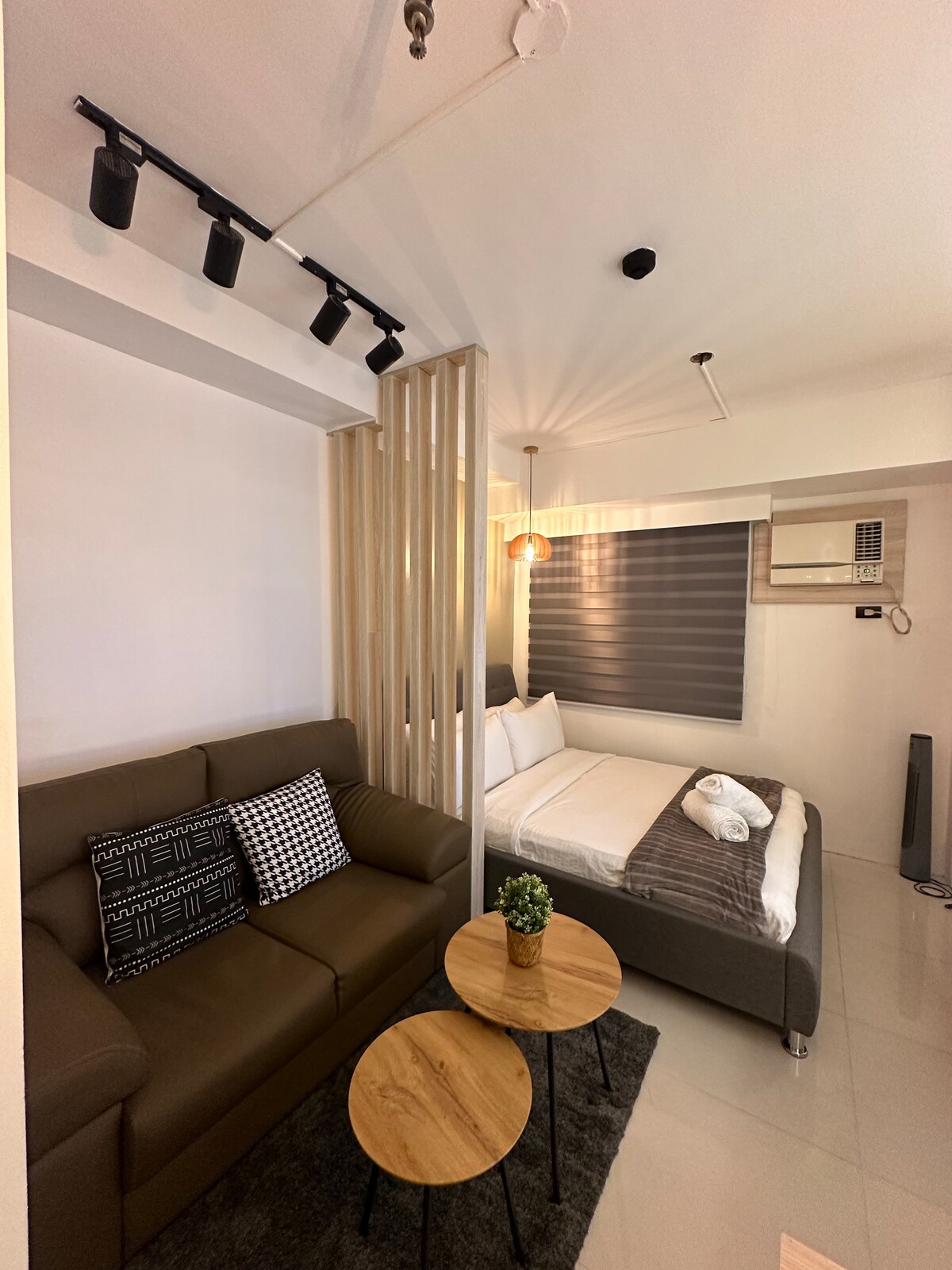 Welcome to Your Suite Escape—nestled right in the vibrant entertainment hub of Tomas Morato, Quezon City! Explore trendy cafés, indulge in local dining, or simply unwind after a long day with cozy movie nights on Disney+ and Netflix right in the comfort of your suite. Enjoy a thoughtfully designed studio with warm interiors, natural light, and hotel-style comforts. If this place is booked on your date, check out our other themed spot at airbnb.com/h/your-suite-escape-the-26th-at-tomas-morato