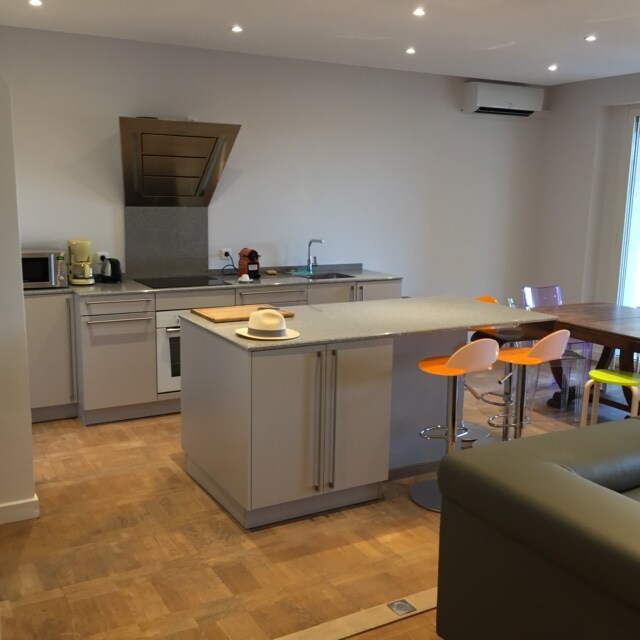 Nagyon szép lakás 100 m2 felújított és teljesen felszerelt. A Rue de la République utcában található, közel a kényelmi szolgáltatásokhoz, 200 méterre a központi pályaudvartól és 5 percre a Pápai Palotától. Nagy, bútorozott terasz. 3 független hálószoba, 2 fürdőszoba/WC. Teljesen felszerelt konyha, amerikai hűtőszekrény, borospince, légkondicionálás.