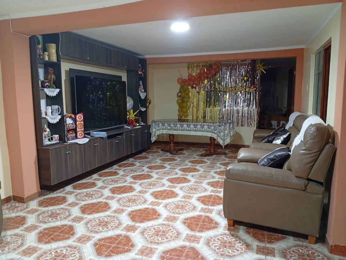 Diviértete con toda la familia en este alojamiento con estilo. A solo dos cuadras de la plaza de Ayacucho. Alquiler de habitaciones o departamento entero para 10 personas, totalmente equipado. Cuenta con cocina, lavandería, sala, comedor