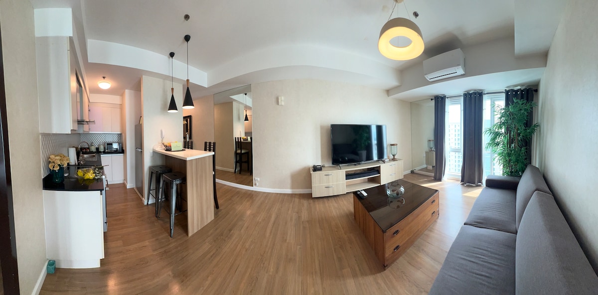 Éld át a modern életet stílusos, egy hálószobás lakásunkban. Ez a lakás tágas elrendezésű, bőséges természetes fénnyel, teljesen felszerelt konyhával és hangulatos nappalival. A hálószoba kényelmes, kihúzható queen méretű ággyal és bőséges tárolóhellyel rendelkezik. Élvezd a lakásban található mosógép és a nagy sebességű internet kényelmét. Az Abreeza mellett található szállásról könnyen megközelíthető a tömegközlekedés, a vásárlási lehetőségek és az éttermek. Ez a szállás tökéletes rövid és hosszú távú foglalásokhoz is, és ideális otthon az otthonodtól távol.