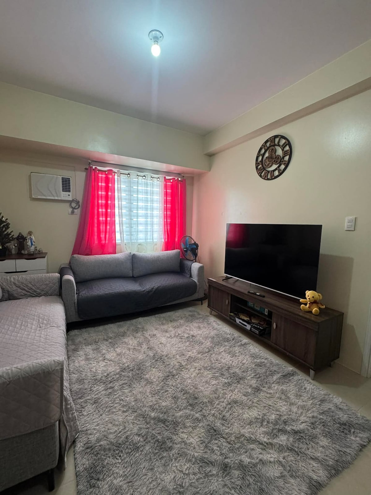 1-4 fő befogadására alkalmas a Serin East Tagaytay negyedben. Chill or Watch your favorite Netflix using our 55-inch Smart TV and relaxing in our hotel-grade queen bed. Extra matracot is biztosítunk. Az ingatlan stratégiailag az Ayala Mall Serin Tagaytay, a Lourdes Tagaytay-i Miasszonyunk, a Tsokolateria, a Balay Dako, a Bag of Beans stb. közelében található.