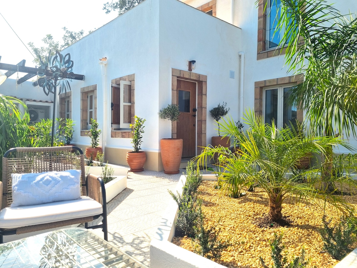 A stylish and cosy retreat, nestled in a protected ecological river valley just outside Tavira. Overlooking the serene Sequa River, this charming 1-bedroom guest annexe has:- * Secure, electronic gates * Its own private entrance, separate to the main house * Sole use of the Mediterranean garden with various seating areas * King-size bed * Air conditioning, heating, fast wi-fi * 2 minute drive into the centre of Tavira * 20-minute flat stroll along the river to the vibrant heart of Tavira.
