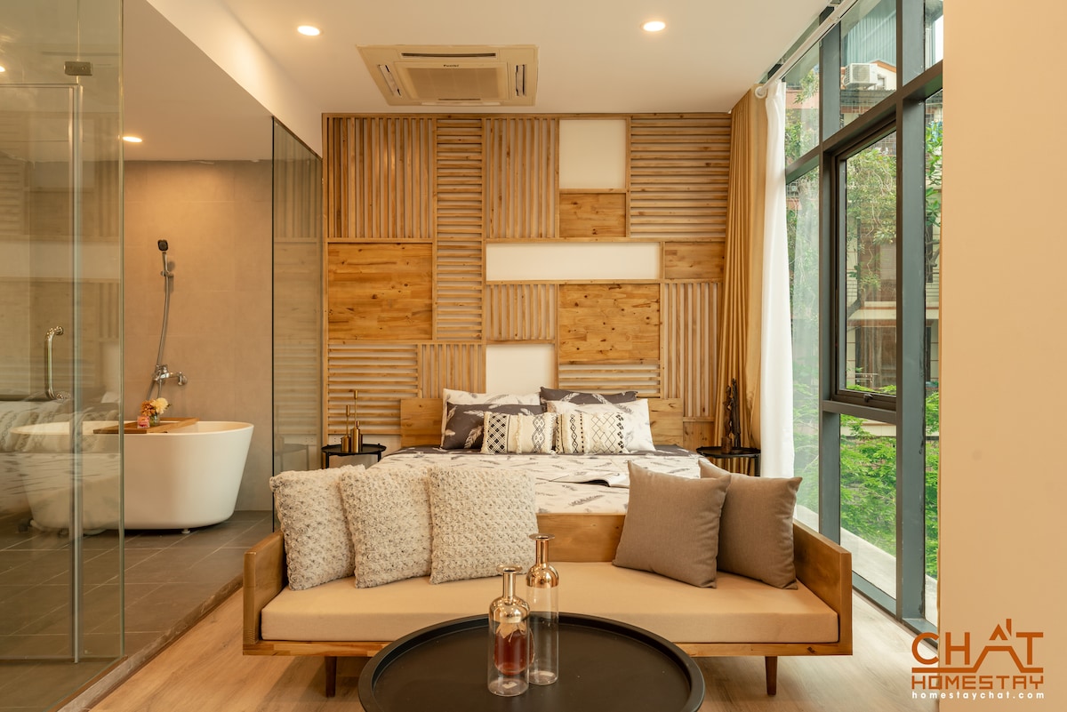 Hangulatos stúdió természetes fa dizájnnal és egy saját, zöld növényekkel teli szabadtéri erkély. Egy biztonságos és csendes környéken található épület negyedik emeletén van, a Trúc Bạch-tó közelében. Tökéletes azoknak az egyedül utazóknak vagy pároknak, akik békés menedéket keresnek. Mrs. Nghĩa közvetlenül az épületben van, hogy minden nap 9:00 és 16:30 között személyesen segítsen Önnek.