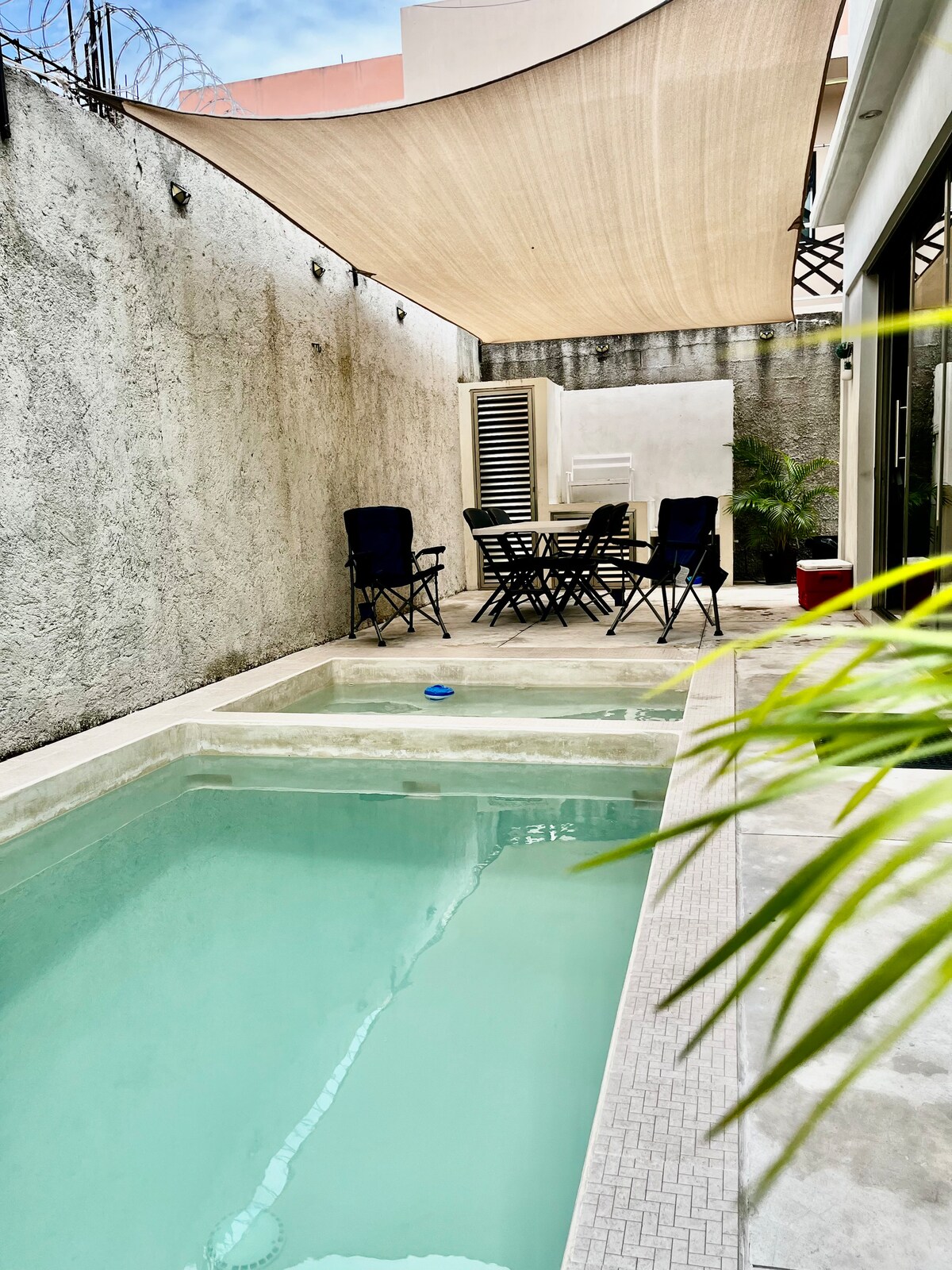 Departamento con ALBERCA y 2 Habitaciones - Céntrico, cerca de la Facultad de Medicina de la Universidad de QRoo, Unidad Deportiva del Tecnológico de Chetumal (ITCH), CLIDDA, fármacia, Gasolinera y otros. - Cuenta con 2 HABITACIONES * Internet. * SmartTV de 40 con Netflix * Camas matrimoniales y Hamaquero * Closet. * Parrilla para cocina de Gas. * Cafetera tipo Dolce Gusto * Refrigerador. * Sala * Comedor * Ventiladores * Aire Acondicionado. * Baño con Agua fría y caliente. * Estacionamiento