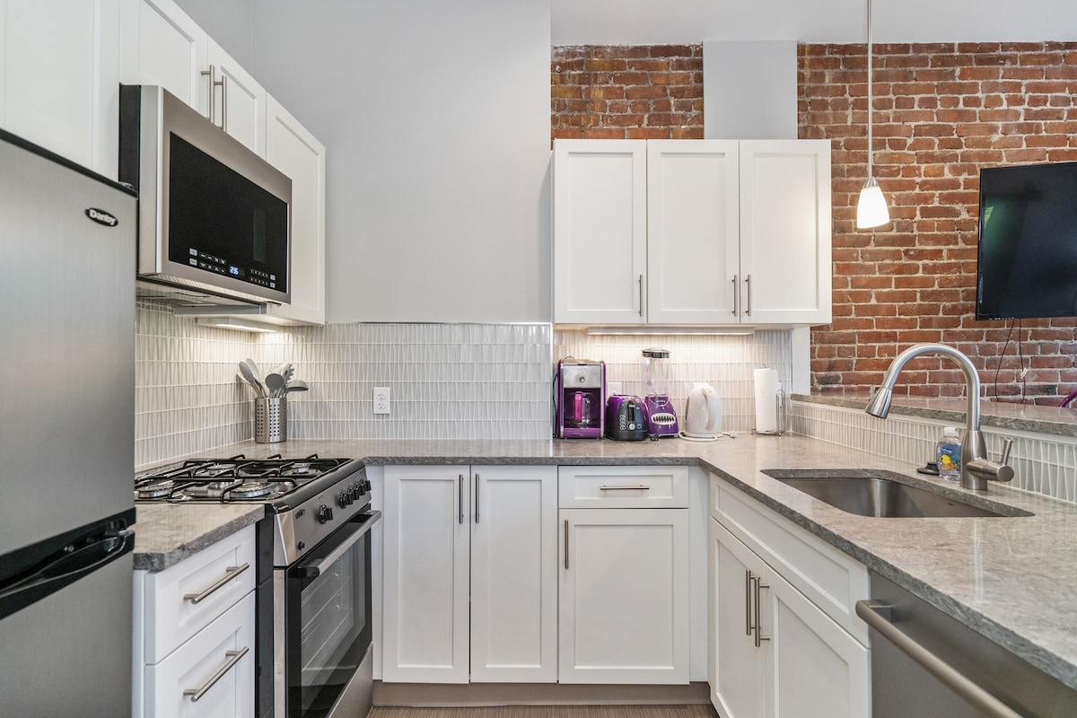 Discover The Chester, A Boutique Stay in the heart of the South End. Designed to accommodate up to 4 guests, this space features a king bed, a queen pull-out, and a fully equipped kitchen. Enjoy city views, classic Boston Brownstone original crown moldings, smart TVs, and a sleek, modern tiled shower. Expertly decorated with a mix of contemporary and antique furnishings, this urban retreat offers comfort and style at the heart of the vibrant city.