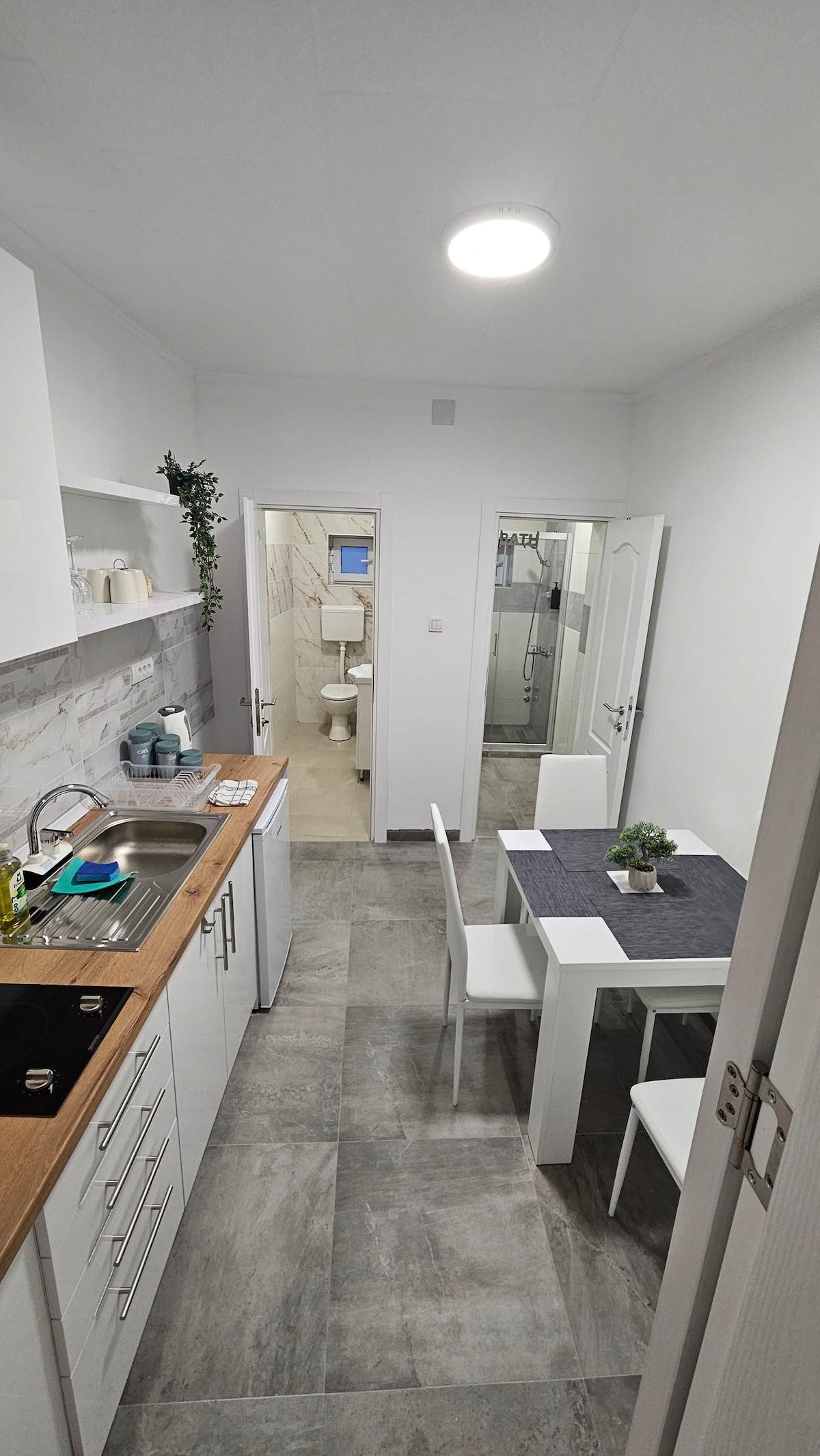 Welcome to The Central Nest – a modern, cozy retreat in the heart of Bečej. Just steps from vibrant shops, cafes, and the scenic riverside, our one‐bedroom apartment offers an open living area, a fully equipped kitchen with complimentary coffee, tea, and treats, plus a bathroom with a walk-in shower. Enjoy free high-speed Wi-Fi (500 Mbps), parking, and access to laundry facilities next door. Ideal for families and business travelers alike.