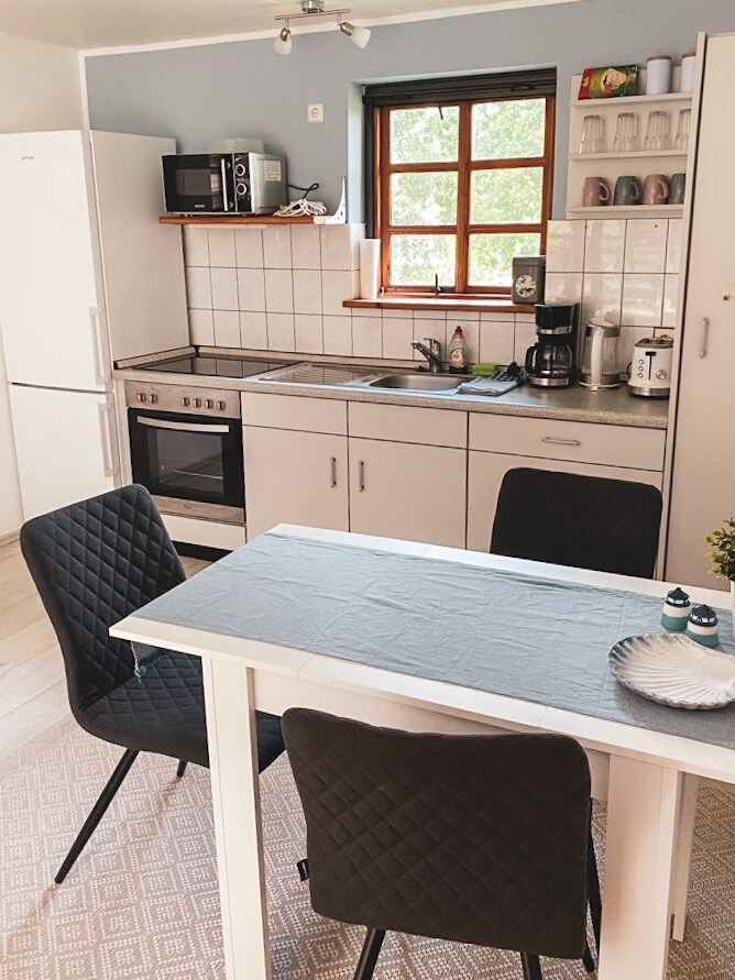 A bungaló csendes helyen található - csak körülbelül 850 méterre van a mólótól és a Balti-tenger partjától. Hangulatos nappali-konyhával, kandallóval, ülősarokkal, intelligens TV-vel, hálószobával., zuhanyzó/WC, két terasz, ingyenes Wi-Fi, mosógép és parkolóhely. A konyha teljesen felszerelt mosogatógéppel. Ágy. kérésre lefoglalható az Aufpeis ellen - majd az ágyak érkezéskor elkészülnek. Boltin a Tarnewitzer Hof oldalát is megtalálod.