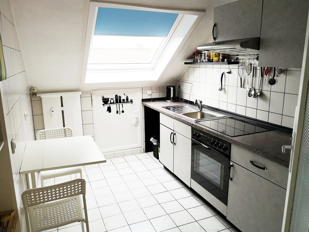 Well being in Karlsruhe: A tetőtéri penthouse a legközpontibb helyen található, de mégis csendes és békés. A tetőtéri teraszról az egész városra és a fekete erdőre nyíló kilátás az egyik legjobb az egész városban. A tetőterasz modern grillezőt és ízléses bárbútorokat kínál. A sétától számított néhány percen belül elérhetők a legjobb éttermek, bárok és üzletek. A vásár autóval mindössze 12 perc (7,5 kilométer). Ez egy külön helyiségekbe nyíló ajtók nélküli loftlakás.