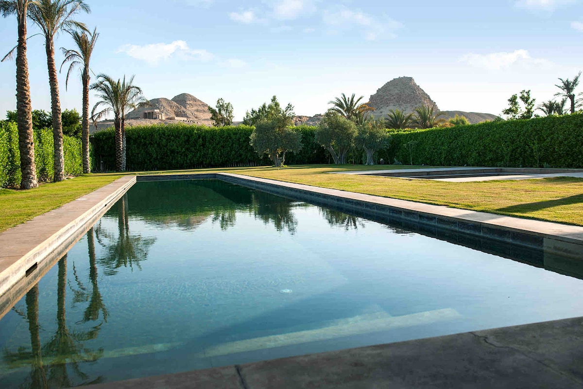 Ébredj az ősi Abusir-piramisok lélegzetelállító látványára. Lenyűgöző 5 hálószobás villa vendégházzal, medencével, buja kerttel, edzőteremmel, játszószobával és lombházzal. 10 főnek. A díjnyertes építész, Ahmad Hamid (2010-es Világépítészeti Díj) tervezte, Hassan Fathy ihletésére. 20 percre a gízai piramisoktól és a Nagy Egyiptomi Múzeumtól. Taya Elzayadi által személyesen összeválogatott művészeti gyűjtemény. Privát szakács bérelhető. Békés, családbarát hely, ahol a történelem, a művészet és a luxus találkozik.