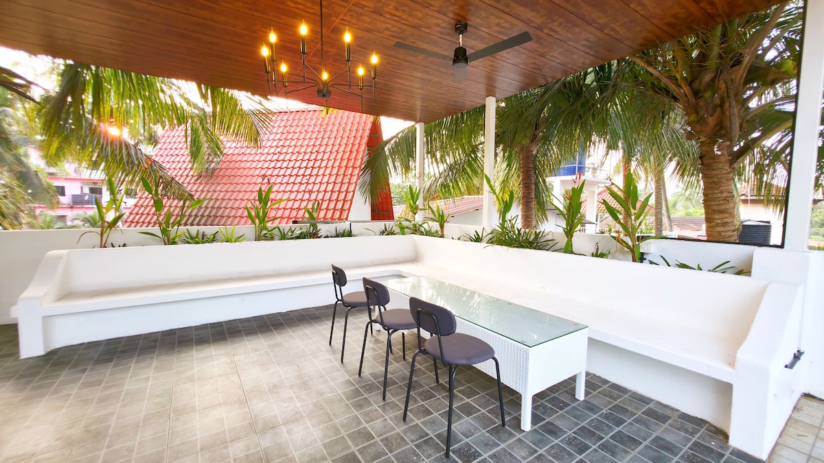 ☆ Saját medence közvetlenül az erkélyeden Észak-Goa összes nagyobb strandja mellett☆ található ☆ Calangute Beach 6 perc 🛵 ☆ Candolim Beach 13 perc ☆ Vagator Beach 25 perc ☆ Anjuna Beach 25 perc ⇒ Könnyen elérhető mindkét repülőtér ⇒ Békés környék, amely⇒ tökéletes a WFH számára. Íróasztalt és üvegszálas WIFIT TARTALMAZ ⇒ Bőséges parkolóhely autók és kerékpárok számára 4 felnőtt⇒ férőhely ⇒ Csúcskategóriás bútorok, francia evőeszközök, 1 king méretű ágy és 1 queen méretű kanapéágy ⇒ 55” Smart TV, PlayStation és Marshall hangszórók