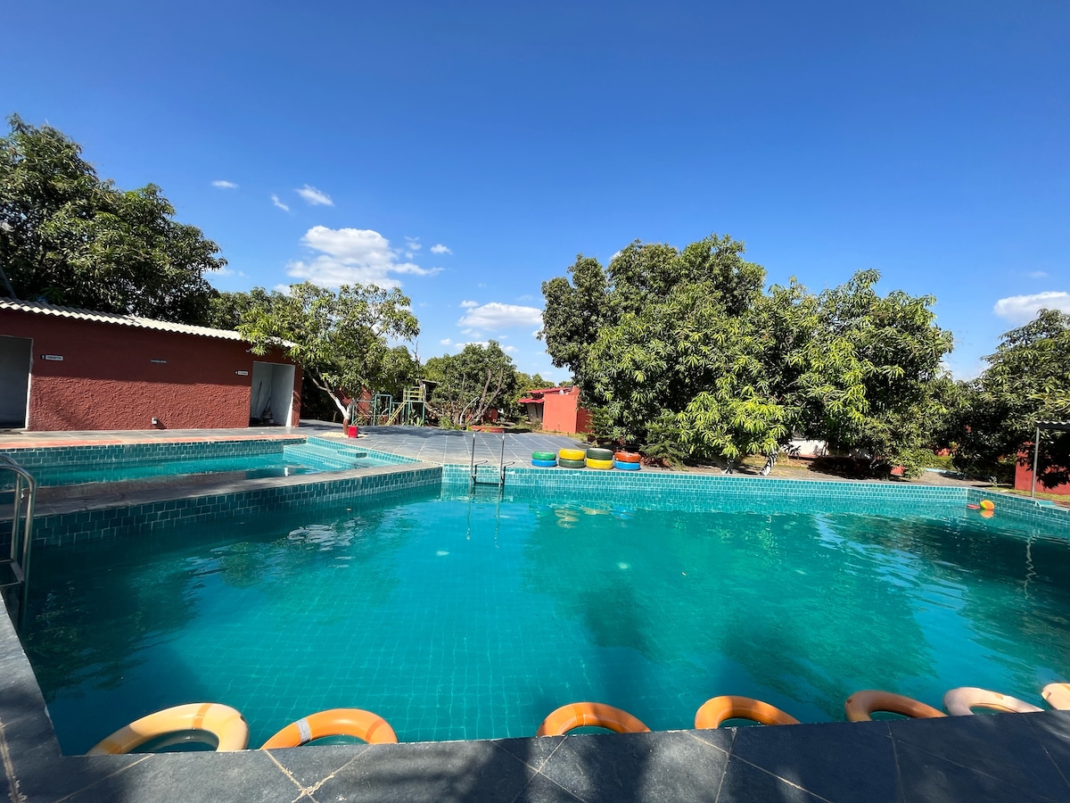 Hallottad már az oroszlán moraját, miközben a szabad ég alatt étkezel, és tábortűzben gyönyörködsz? Most már a farmon is megszállhatsz nálunk. Családbarát falusi szálláshelyet kínálunk hagyományos indiai ételekkel, tágas szobákkal, friss mezőgazdasági levegővel és úszómedencével. Felejtsd el az aggodalmaidat, és csatlakozz hozzánk a törzsi kulturális táncelőadáson esténként (kérésre), és énekeld a kedvenc dalaidat egy tábortűz körül. Az éjszakánkénti ár tartalmazza a reggelit, ebédet és vacsorát (3 étkezés) a vendégeknek.