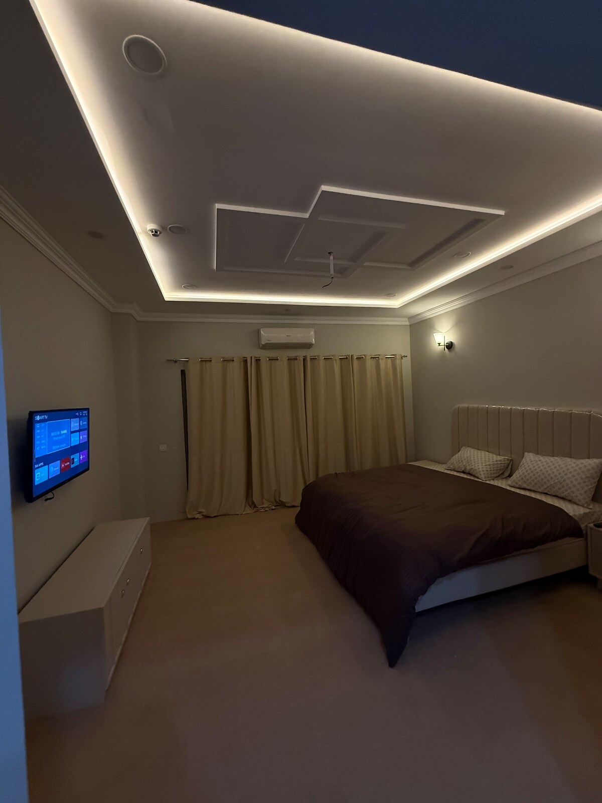 Escape to our serene bedroom oasis, perfectly suited for couples and small families seeking a relaxing getaway .Enjoy a comfortable night's sleep in our cozy bedroom . The apartment features a comfortable bed, a well-equipped kitchenette, and a fully smart tv, air conditioner, 24/7 internet, electric heating rod for hot water. Located in a prime location, you'll have easy access to nearby attractions such as imtiaz mall, Buch international hospital, cinema and restaurants .
