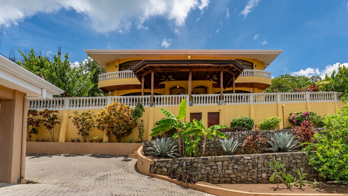 Playas del Coco egyik legjobb óceáni és hegyi kilátása! Mindenkit szívesen látunk! Tökéletes pároknak, családoknak és távolról dolgozóknak. Teljesen felszerelt ház, amely egy hegy tetején található egy zárt közösségen belül, 10 perc sétára a strandtól. Élelmiszerboltok, éttermek és üzletek a közelben. Rövid autóútra a libériai repülőtértől (20 perc). Élvezd a madarak és majmok koncertjét minden alkonyatkor és hajnalban, látványos naplemente a Playas del Cocóra néző kilátással. Közel a természethez, de nem messze az árucikkektől!