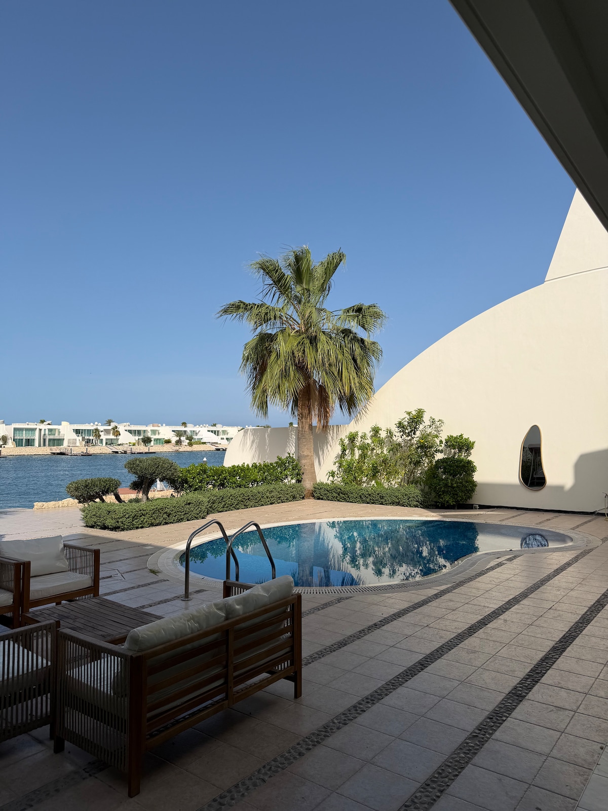 Saraya Al Bahr villa, medence és tenger hullámok között