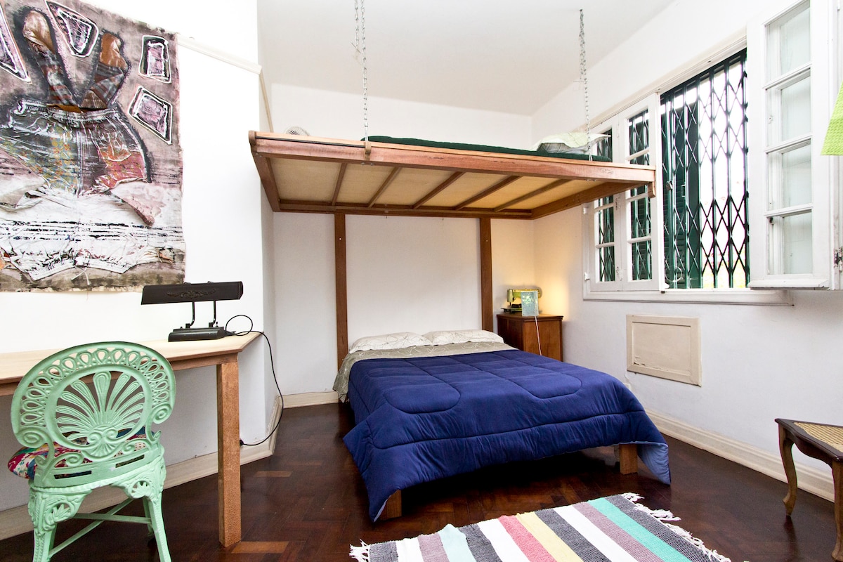 Gyönyörű, vadonatúj, háromszintes sorház Flamengóban, Rio egyik legrégebbi és legbájosabb környékén. Közel minden kényelmi szolgáltatáshoz, a Flamengo strandhoz, és 5 percre a metrótól. Ideális helyszín az ünnepekhez, hétvégi kiruccanásokhoz, távmunkához (külön munkaterületek mindkét saját fürdőszobával rendelkező hálószoba mellett) vagy egy különleges eseményhez. Ideális kiindulópont fesztiválokhoz, koncertekhez, műsorokhoz vagy konferenciákhoz. Élvezd az igazi autentikus Rio-élményt egy kényelmes szálláshelyen. 2 db saját fürdőszobás hálószoba, 1 db dupla kanapéágy és 1 db egyszemélyes ágy.
