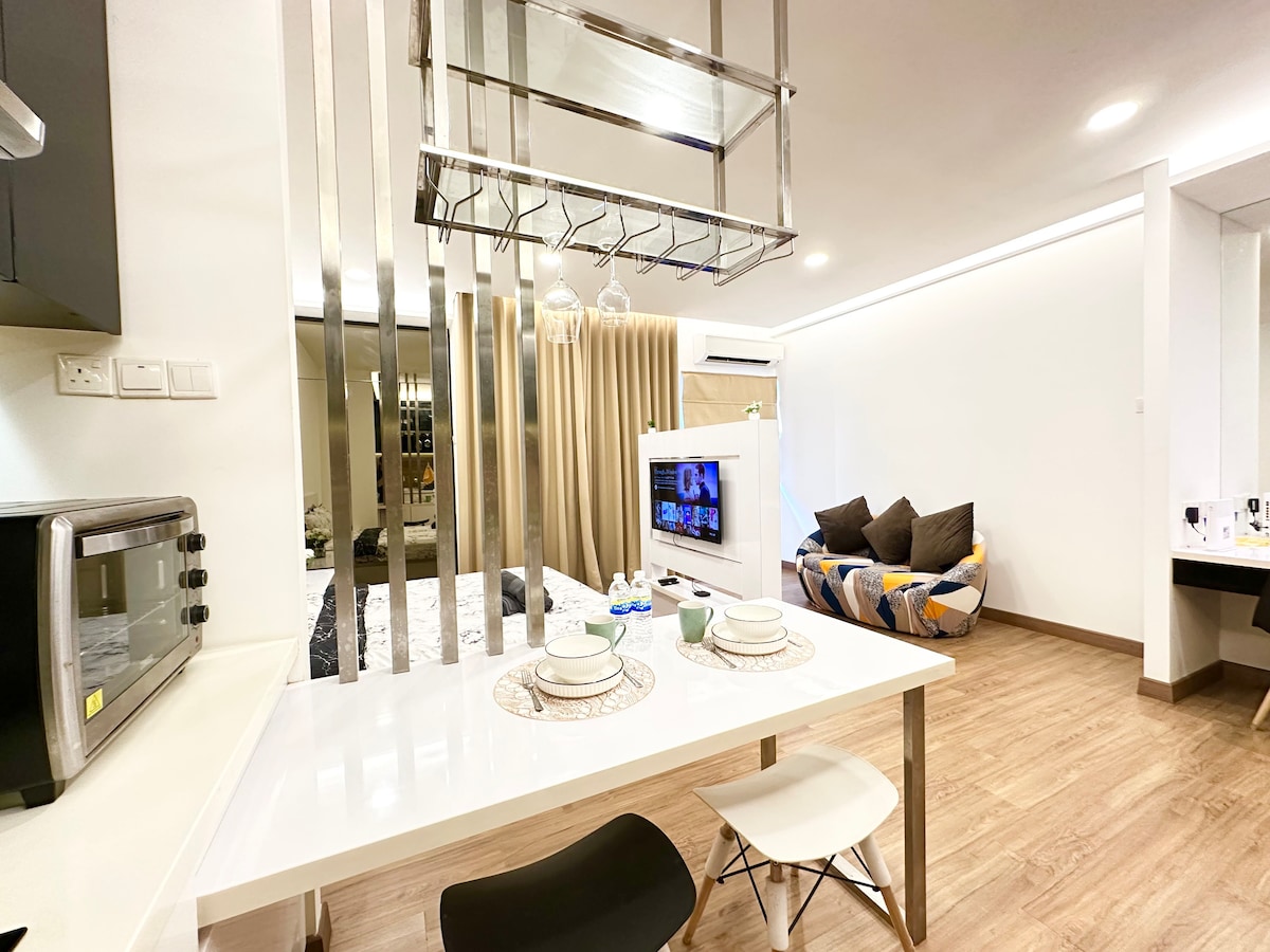 Helyszín: Symphony Tower, Balakong Parkolás: Beltéri parkolás 1 autó számára, közös parkolás motorkerékpár számára Üdvözlünk a BananaHome-ban, egy hangulatos, teljesen felszerelt stúdióban, amely akár 2 felnőtt számára is tökéletes. Élvezd a hozzáférést jól felszerelt edzőtermünkhöz és a csodálatos éjszakai kilátáshoz @Level 40 Sky Garden, a végtelenített medence, a gyerekjátszótér és még sok más létesítmény. Közeli bevásárlóközpontok: The Mines, Aeon, Amerin A Batu 11 MRT állomás közelében Sétatávolság 24 órás kisbolthoz, szupermarkethez, éttermekhez és még mozihoz is!