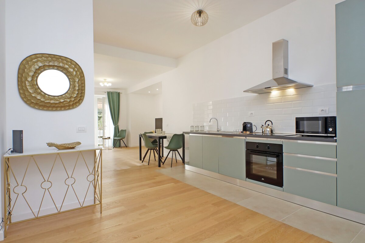 A romantic, bright apartment, where every detail is designed to make guests feel pampered. The living room with open kitchen creates a convivial and harmonious atmosphere, ideal for relaxing. The bedroom offers comfort and tranquility, while the intimate and functional study is perfect for working or reading. The apartment also features a delightful balcony, ideal for enjoying breakfast in the morning or a romantic aperitif at sunset.