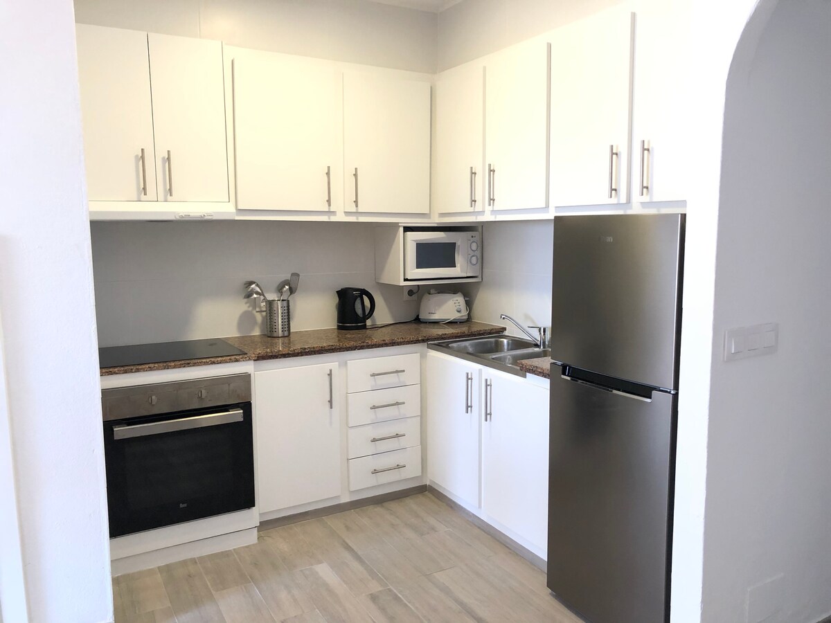Apartment in private plot in Calan Blanes (Ciutadella) fully renovated, furnished and equipped A lakás nagyon csendes lakóövezetben található, és nincsenek autóhangok. Étkezője légkondicionálóval, teljesen felszerelt konyhával (gáztűzhely, sütő, mikrohullámú sütő, hűtőszekrény, mosogatógép és két kávéfőző, egy kapszula és egy másik hagyományos) rendelkezik. A hátsó részen van egy terasz és egy helyiség, ahol a mosógép található. A JACUZZI JÚLIUS 1. és SZEPTEMBER 30. KÖZÖTT érhető el.