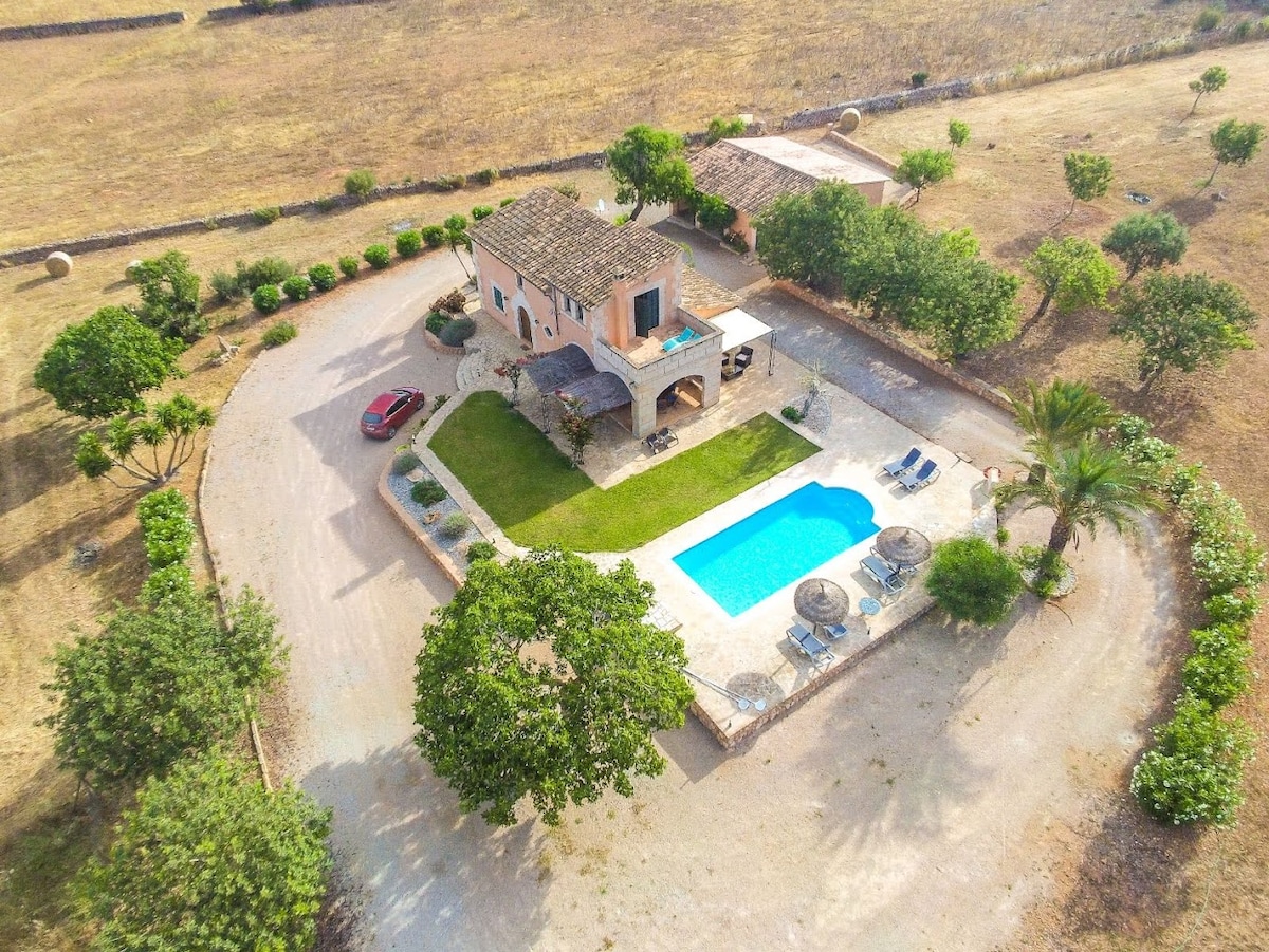 Szép birtok található 5 km-re Playa d 'Es Trenc. Ez csak 3 km-re a bájos falu Ses Salines. Szintén közel Santanyí és Es Llombards és Colonia de Sant Jordi. Található egy kis dombon, egy nagyon csendes környéken, szomszédok nélkül a közelben, a természet közepén, egy adott utat, távol a zaj. Ez egy kis oázis a béke és a csend délen Mallorca. Ideális a kellemes és nyugodt nyaraláshoz. A célom az, hogy a vendég otthon érezze magát.