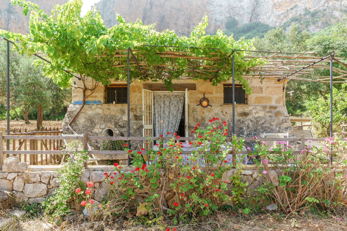 Stílusos ház a természetvédelmi Monte Cofano mintegy 400 m-re a tengertől, gyönyörű kilátással az öbölre a Macari , exkluzív természeti környezetben. A ház egy régi paraszti menedék volt, és nagy figyelmet fordítottak a részletekre a tufában és a ballasztos kövekben. A pihenés, a természet és a magánélet szerelmeseinek a helye. A kerten kívül az egész öbölre néz, és ősi labdás kővel és mozaikokkal, valamint kőpadkal és szicíliai kerámiákkal rendelkezik.