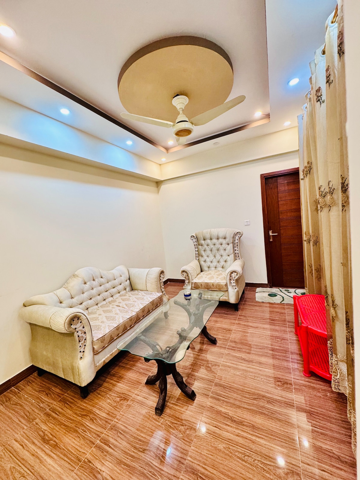 Üdvözlünk tágas, 200 négyzetméteres, első emeleti otthonunkban, amely 2 légkondicionált hálószobával és mellékelt fürdőszobával, hangulatos nappalival, étkezőasztallal és TV-fallal ellátott társalgóval, teljesen felszerelt konyhával és nyugodt kilátást nyújtó erkéllyel rendelkezik. A Gulshan-e-Iqbal Block 7-ben található a közelben élelmiszerláncok, parkok, mecsetek, szupermarketek, orvosi üzletek és pékségek. Éjjel-nappali gondnoki szolgáltatás biztosítja a zökkenőmentes tartózkodást. Tökéletes családok vagy üzleti utazók számára! Üdvözlettel, Faisal Akhlaq