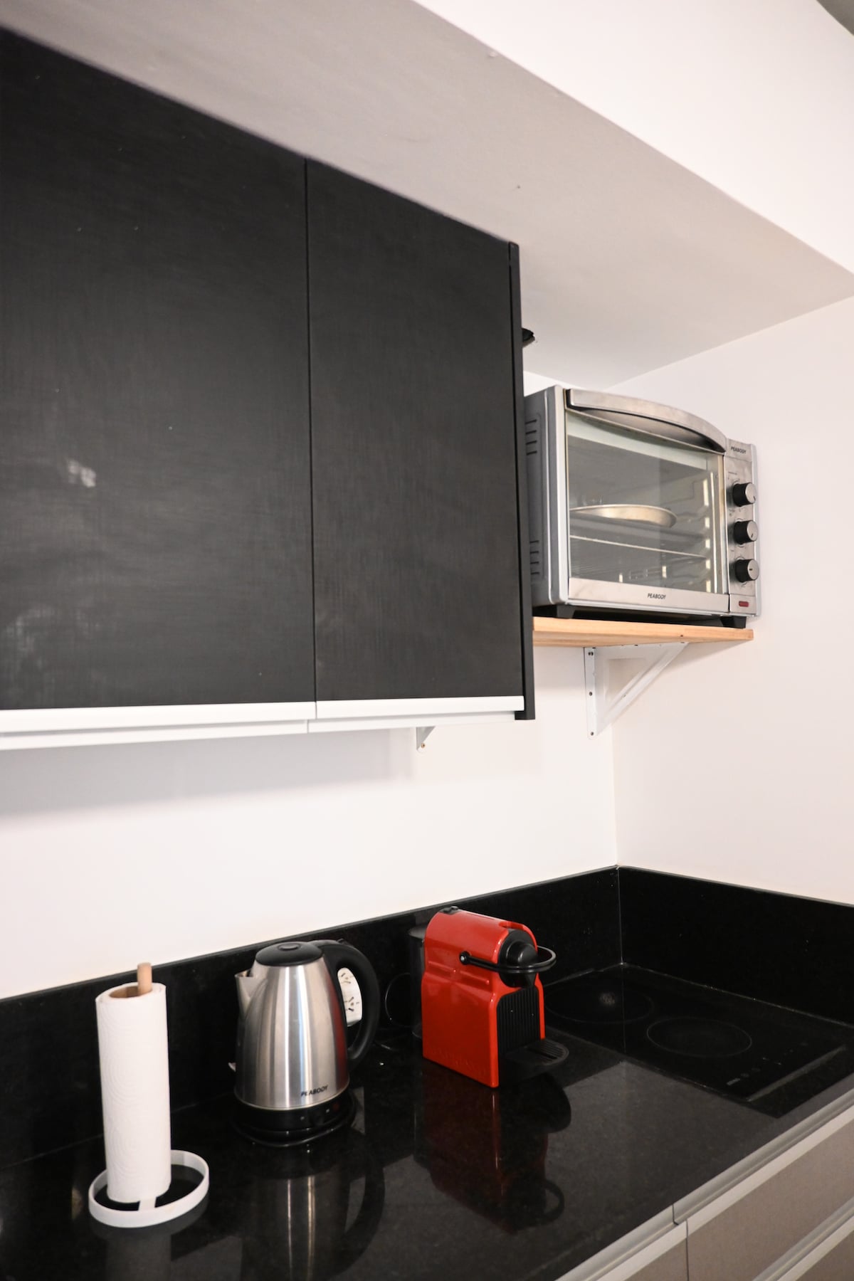 Cook breakfast in a kitchen with vivid wood cabinetry and dine at a traditional table within the open layout of this relaxed studio. Sprawl out on the sofa for a quiet moment of reading. In the evening, unwind with a cocktail on the leafy balcony. Wifi 100MG