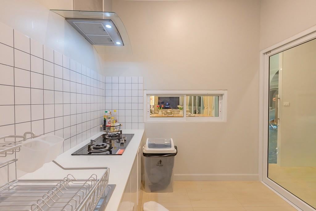 Spacious 4-bedroom villa perfect for groups & celebrations! Bedrooms: BR1 & BR2: King bed, en-suite bath BR3: 4 queen beds (2 bunk-style), en-suite BR4 (Rooftop): Queen bed + bathtub • Large party room with karaoke & shared bath • Private pool with dining terrace (10–12 guests) • 3–4 parking spaces Amenities: Smart TV, WiFi, karaoke system, gas stove, electric & charcoal BBQ grill, rice cooker, microwave, mortar & pestle, ice bucket, and full kitchen essentials.