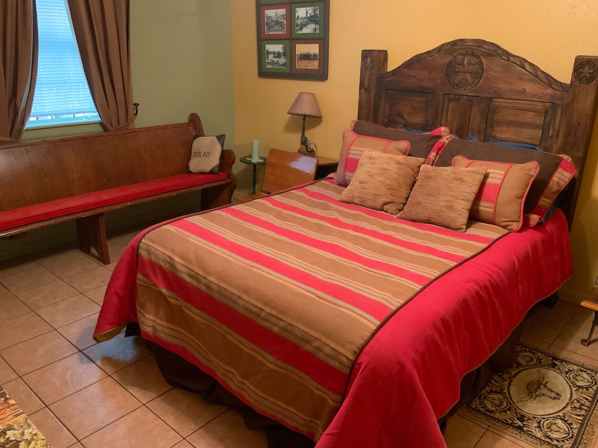 A Cherry Street Retreat mindent kínál, amire szükséged van egy fantasztikus hétvégéhez a világ cowboy fővárosában!MINDEN szükséges kényelemmel rendelkezik, PLUSZ egy hatalmas, szúnyoghálóval ellátott verandával étkezőasztallal és kényelmes ülőhelyekkel.A nagy udvar rengeteg kültéri ülőhellyel, tűzrakóhellyel, függőággyal és grillezővel is rendelkezik.Bent egy teljesen felszerelt konyhát talál, ha vacsorázni szeretne, de mivel a Fő utca csak egy háztömbnyire van, könnyedén élvezheti Bandera éttermeit és éjszakai életét is.