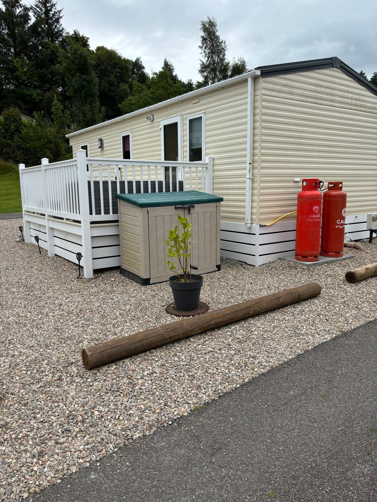 Your lodge is set amongst your own private woodland . Spacious decking with log burning hot tub & gas BBQ. Fitted with fully equipped kitchen and bathroom with shower. Your lodge exudes quality and charm. Includes firewood & pre-light of hot tub. Bathrobes are available to hire directly for £20 cash 2 miles from Inverurie , Royal Deeside , fishing hamlets, castles, distilleries, beaches & golf courses. Additional children's/ teenagers sleeping pod available directly at £30 per night